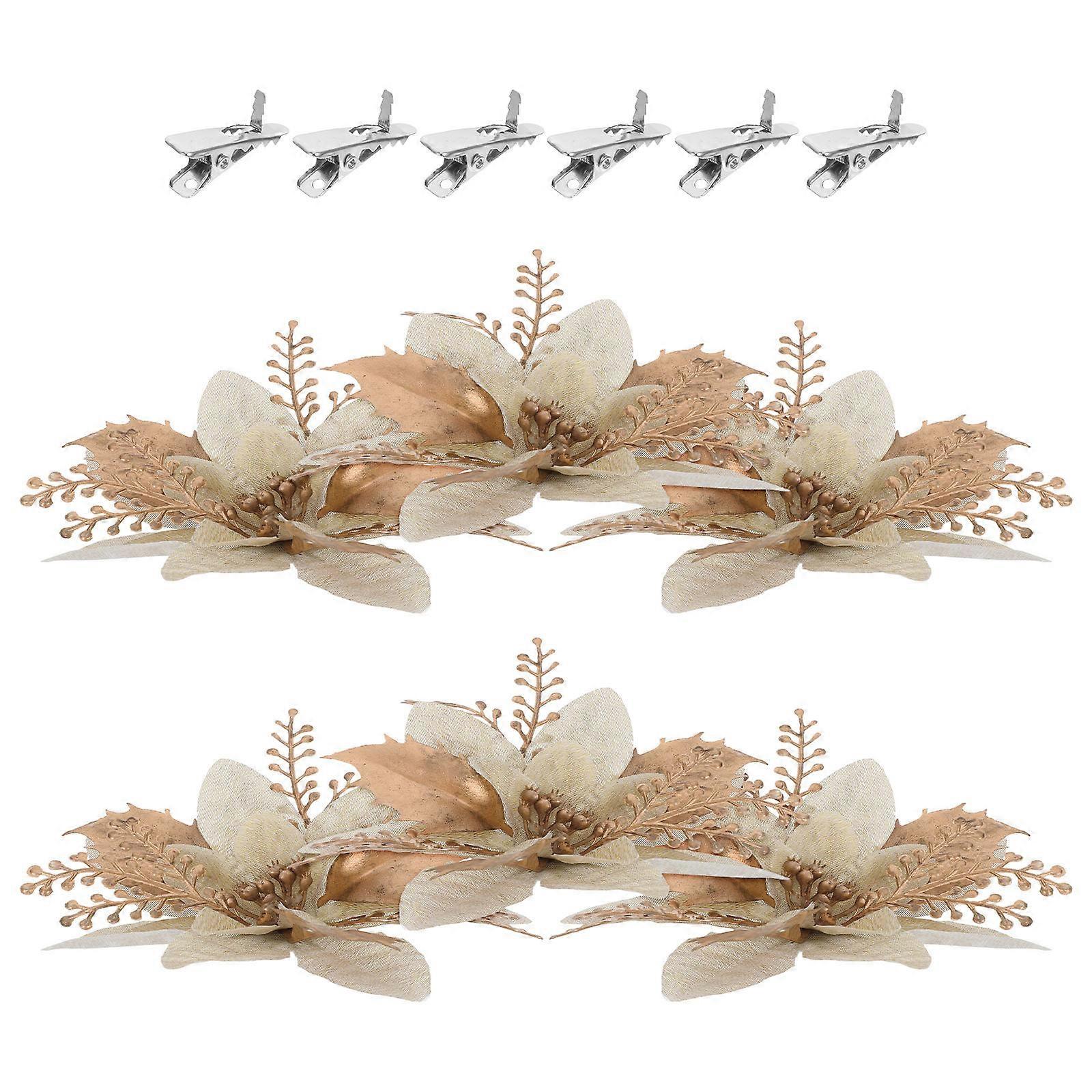 Our collection features twelve unique designs, offering a variety of styles to suit any taste. Whether you prefer classic red poinsettias or glittering gold accents, this set has something for everyone. The realistic appearance of each flower will make your Christmas tree, wreath, or garland look truly magical, creating a warm and inviting atmosphere. Features - ColorAssorted Color -Material:PVC , Silk cloth - Size: 15.00X15.00X3.00cm/5.89X5.89X1.18in -Lifelike design: each piece is crafted with attention to detail to mimic the natural beauty of real flowers, adding a touch of elegance to your decor -Versatile Clip-On Floral Decor: clip-on poinsettia flowers, glitter artificial flower xmas tree decorations wedding floral poinsettia with clips for christmas diy party wreath flower - : constructed from pvc and silk fabric, these decorations are built to last and can be used year after year -Userfriendly: designed for easy installation and removal, these decorations make it simple to transform any space into a festive wonderland -Multiscene application: suitable for a wide range of settings, including homes, offices, and commercial spaces, providing versatile decorating options Package list: 6 x Christmas Poinsettia Flower 6 x Clips