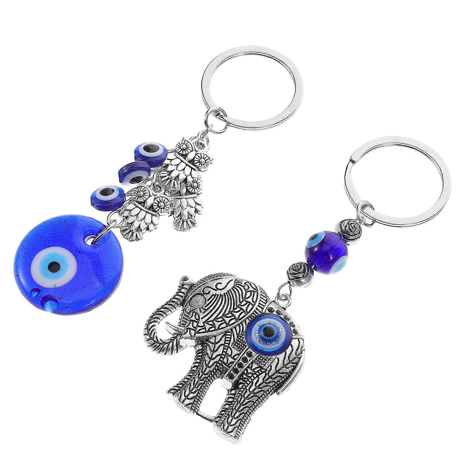 Blue Eye Lucky Elephant Alloy Keychain for Bag and Car Decor 2Pcs Set