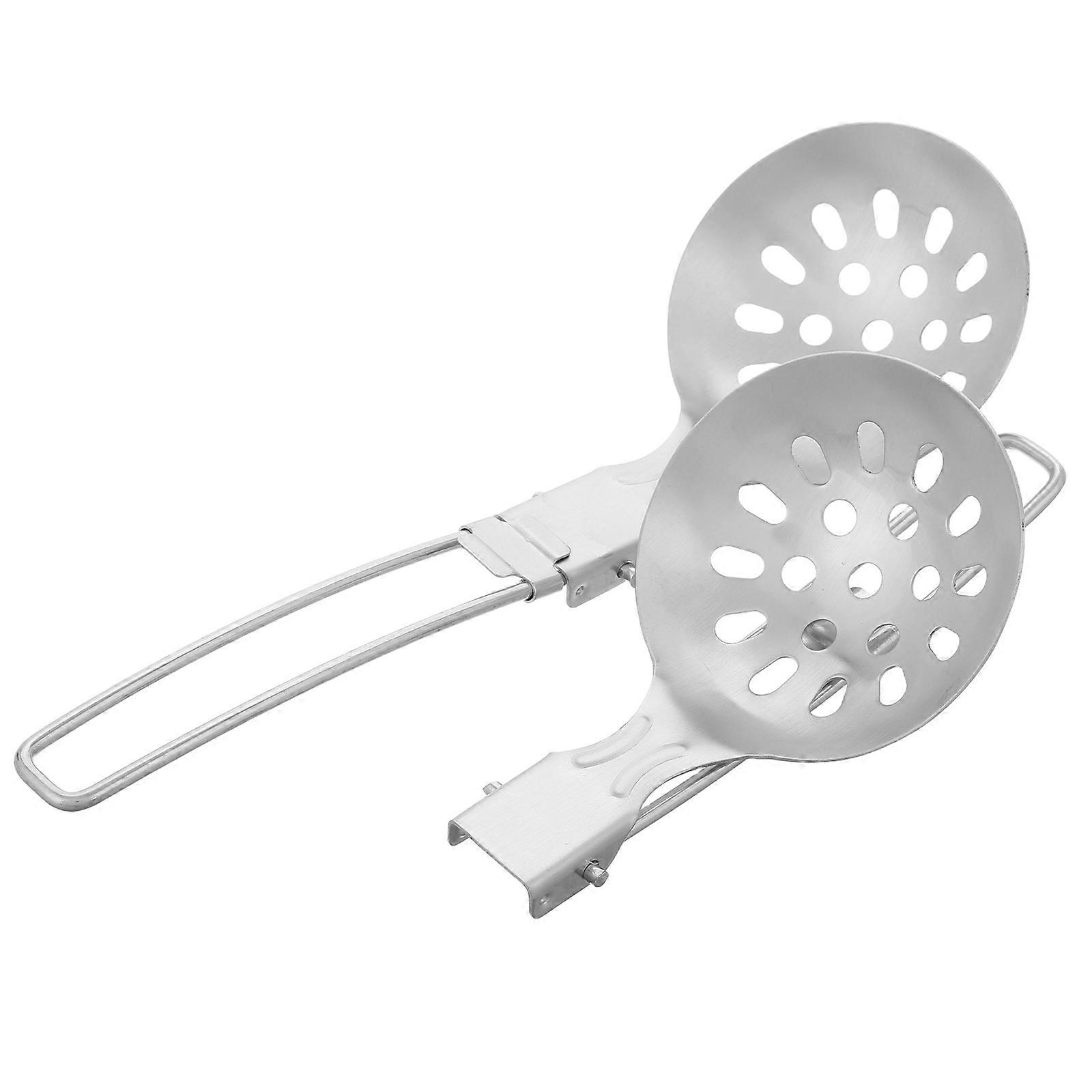 Foldable Stainless Steel Outdoor Skimmer Spoon Utensils for Camping 2Pcs