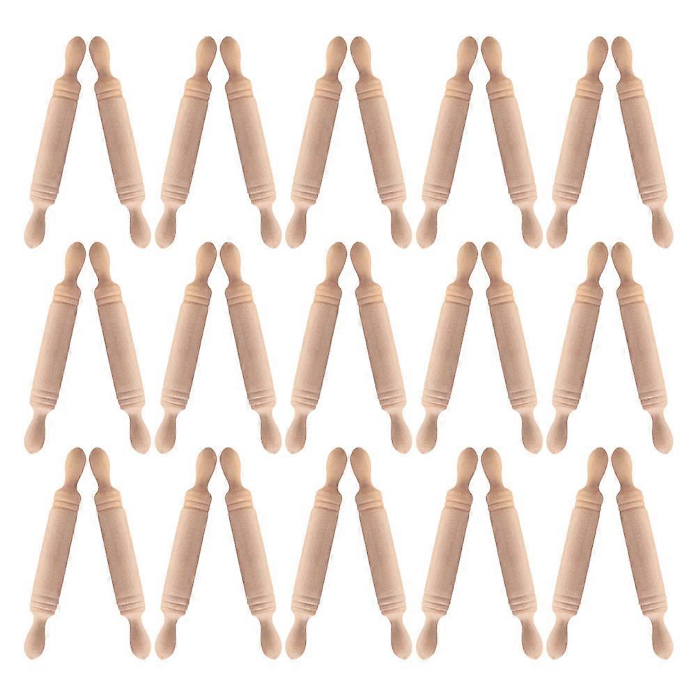 Mini Wooden Rolling Pin for Dollhouse Decoration 50Pcs Small Wooden Accessories