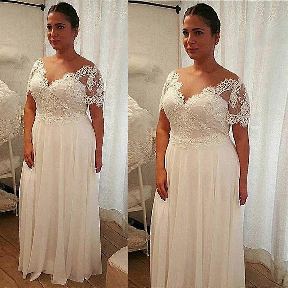Plus Size Wedding Dresses V Neck Chiffon Short Sleeves Lace A Line Bridal Gowns