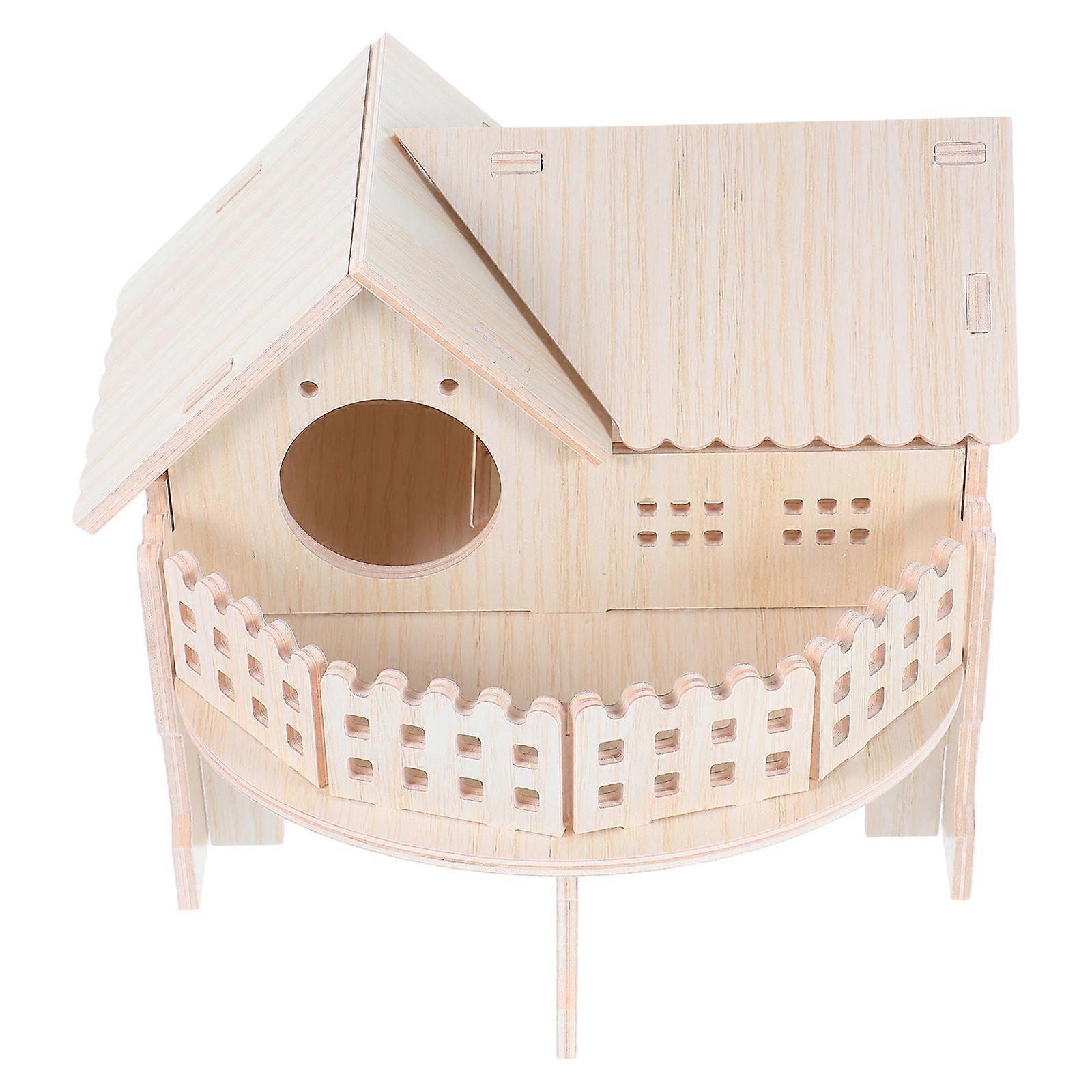 Wooden Hamster House Khaki Villa House Building Set for Small Pet Use