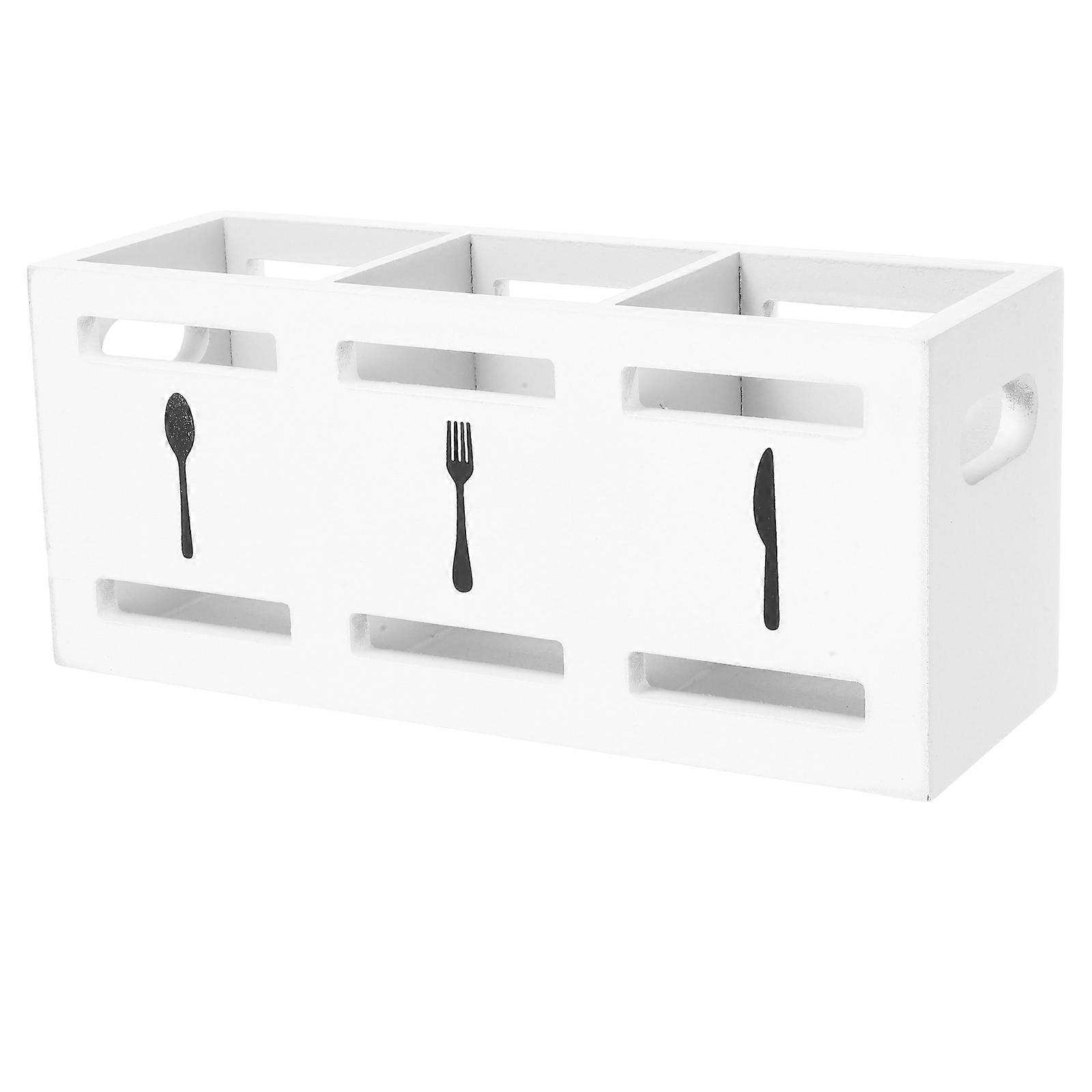 Wood Cutlery Box Holder for Kitchen Utensils White 3Compartment Organizer for Countertop Storage 10.5 x 4.5 x 5.5 Inches