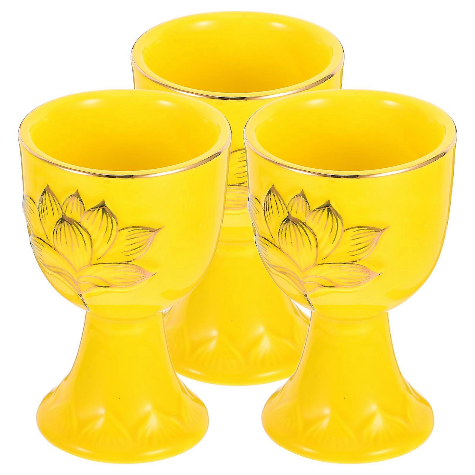 Golden Ceramic Worship Bowls for Home Temple Offering 3Pcs Set
