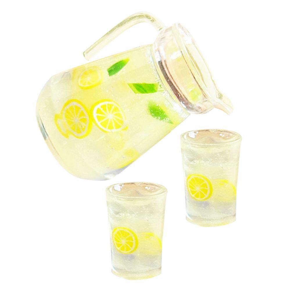 Miniature Lemonade Pitcher Dollhouse Resin Set for Decor 1Set Drink Cups