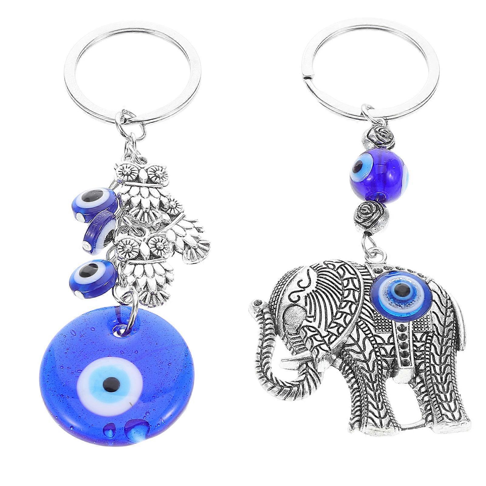 Alloy Lucky Elephant Keychain with Blue Eye for Car Key Decoration 2Pcs