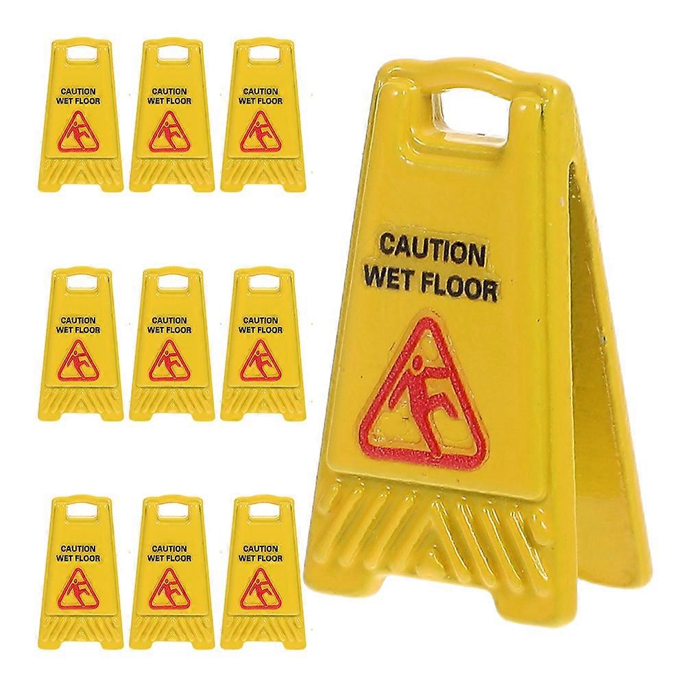 Mini Dollhouse Caution Safety Sign Alloy Yellow Realistic Warning Toy for Pretend Play Size 10pcs