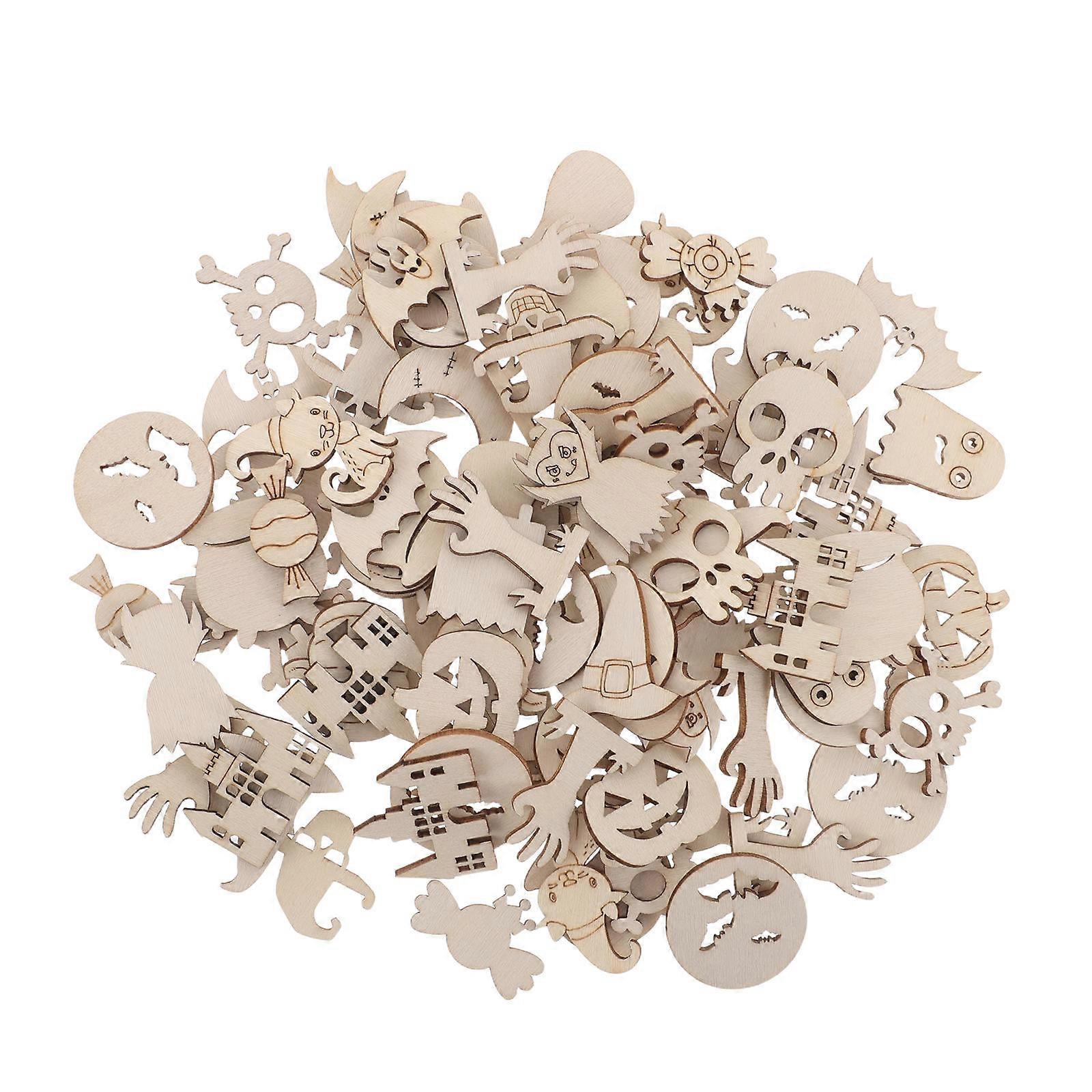 Wooden Halloween Cutout Ornaments 200Pcs Pumpkin Ghost DIY Crafts for Decor