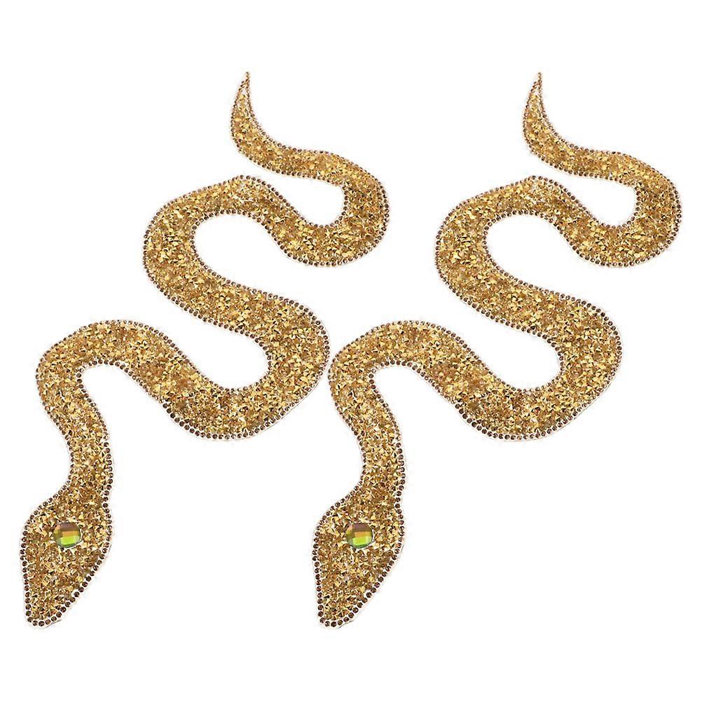 Golden Snake Patch Rhinestone Decoration for Clothing 2Pcs DIY