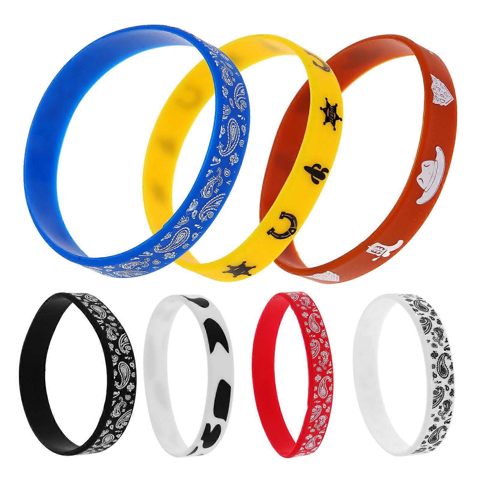 Western Theme Silicone Wristband Bracelet for Decoration 7Pcs Mixed Colors