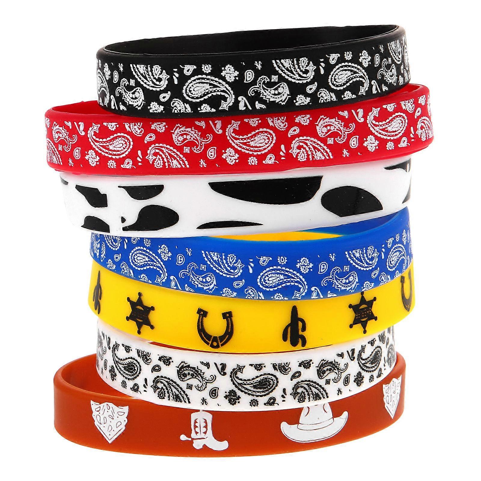 Western Theme Silicone Wristband Bracelet for Decoration 7Pcs Mixed Colors