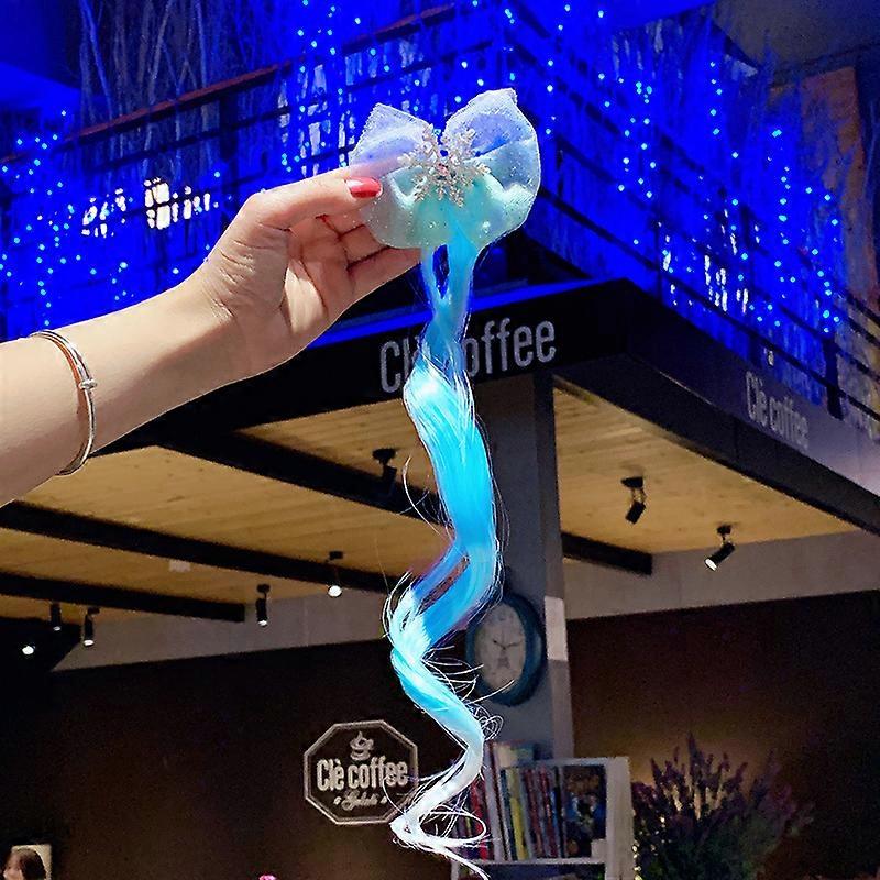 Disney Frozen Elsa Hair Wig Butterfly Knots Blended Blue Gradient Hair Pieces Children Side Clips Hair Accessory Girl Gift