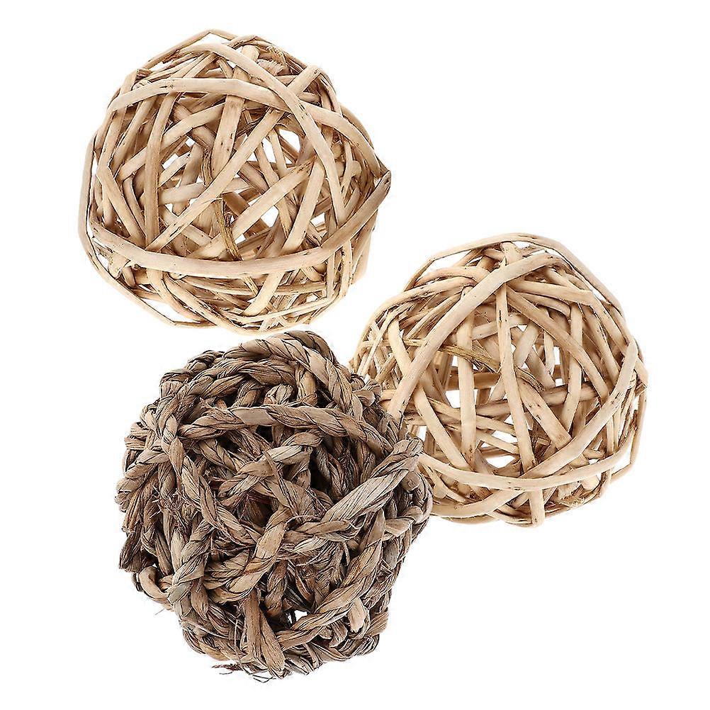 Rabbit Teeth Chew Toys Natural Rattan Ball Toys for Rabbits 3Pcs