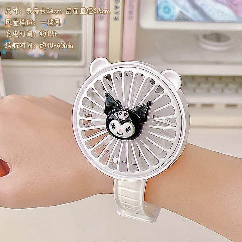 Kuromi Cartoon Wrist Fan Rechargeable Student Children Portable Watch Small Fan Cinnamoroll My Melody Strong Wind Force Usb Fan
