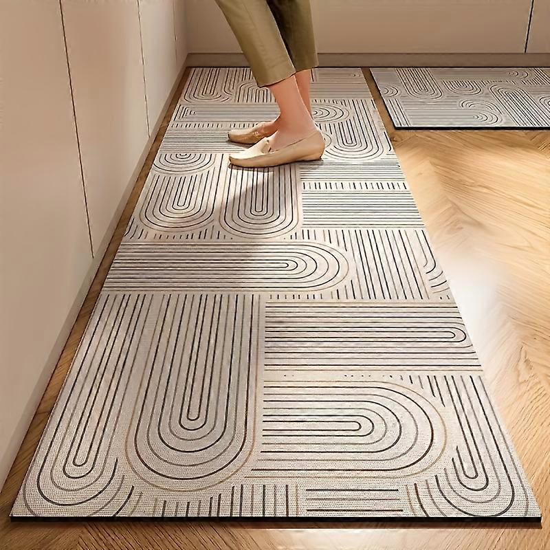 1pc Nordic Style Kitchen Mat - Modern Floral Design with Stripes & Checkered Accents, Rubber Backed Machine