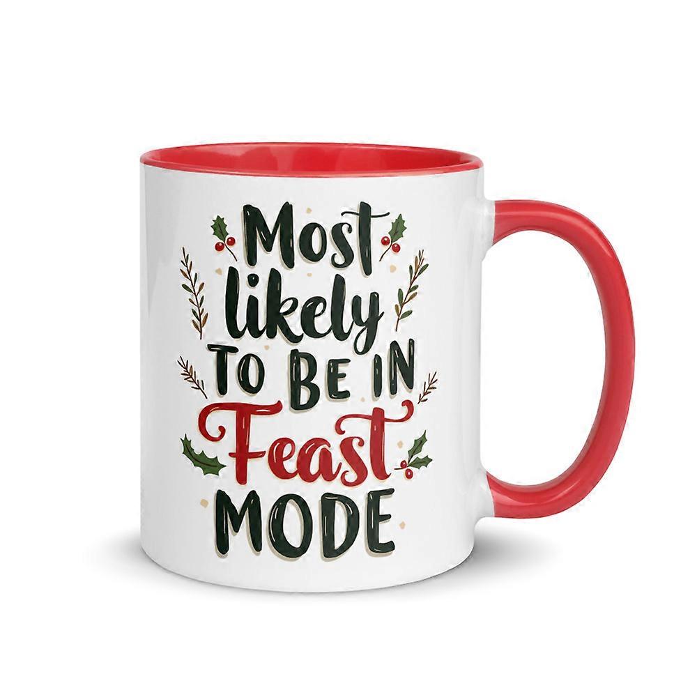 Funny Family Christmas Mug with Color Inside, Most Likely To Be In Feast Mode Xmas (Red, 11 oz)