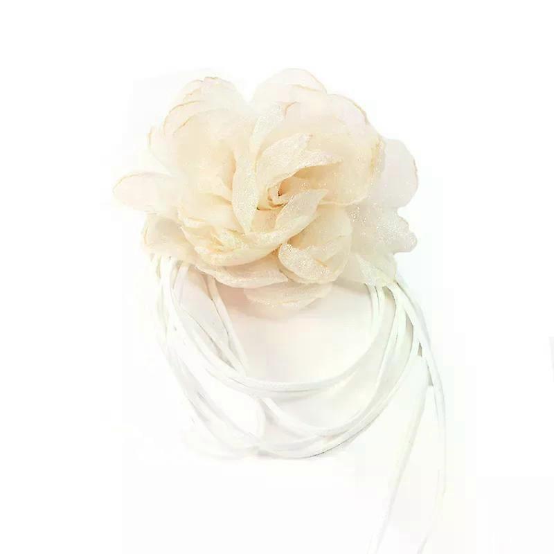 Large Fluffy Fabric Lace Flower Choker Necklace for Women Trendy Elegant Long Lace-up Rope Chains on Neck Collar Fashion Jewelry