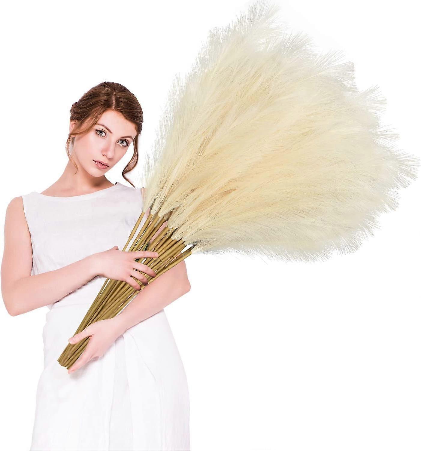 10Pcs 38" Faux Pampas Grass, Fluffy Fake Pompas Florals, Large Artificial Grass Branches for Floor Vase, Boho Home Wedding Decor (Wheat)