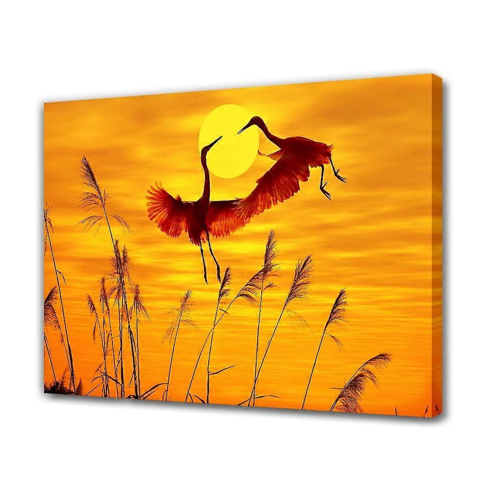 Cranes Flying in The Sunset Canvas Poster Bedroom Decor Sports Landscape Office Room Decor Gift,Frame-style,08x12inch(20x30cm)