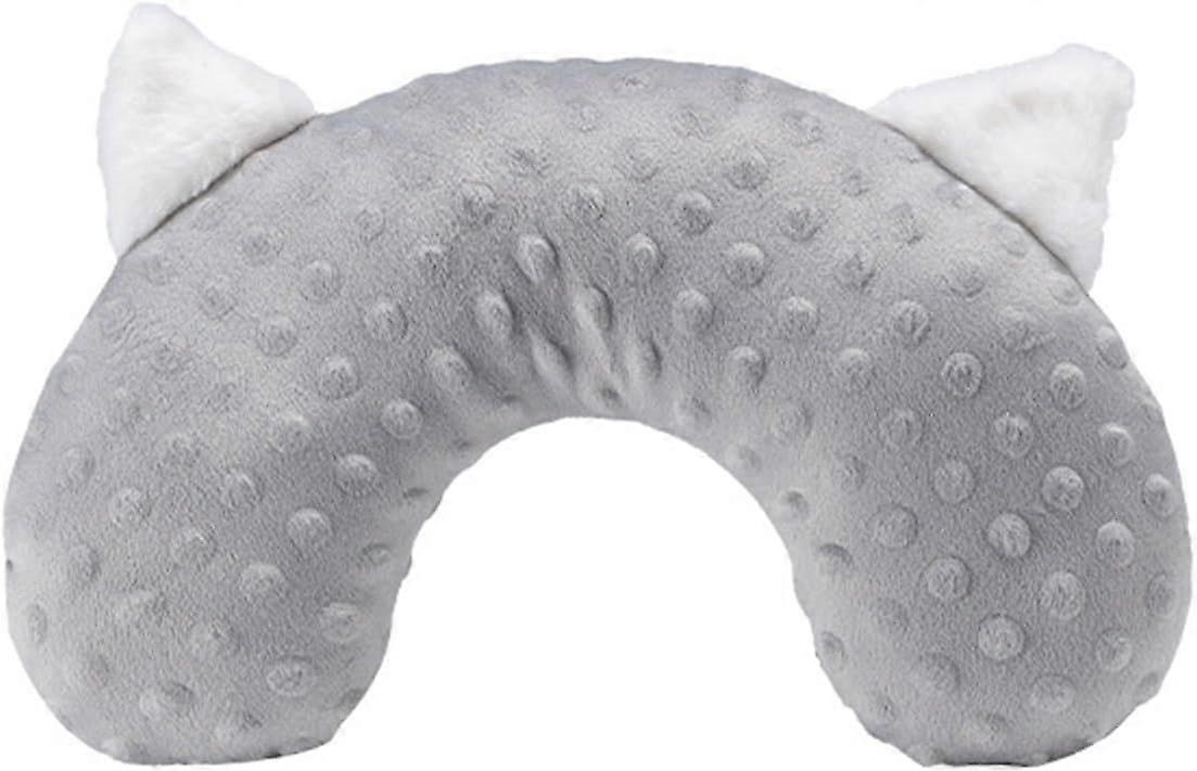 Pet Travel Pillow for Small Dogs & Cats - Soft Gray Faux Mink U-Shaped Neck Support Cushion with Cute Cat Ears, Plush Pet Neck Pillow for Travel & Hom