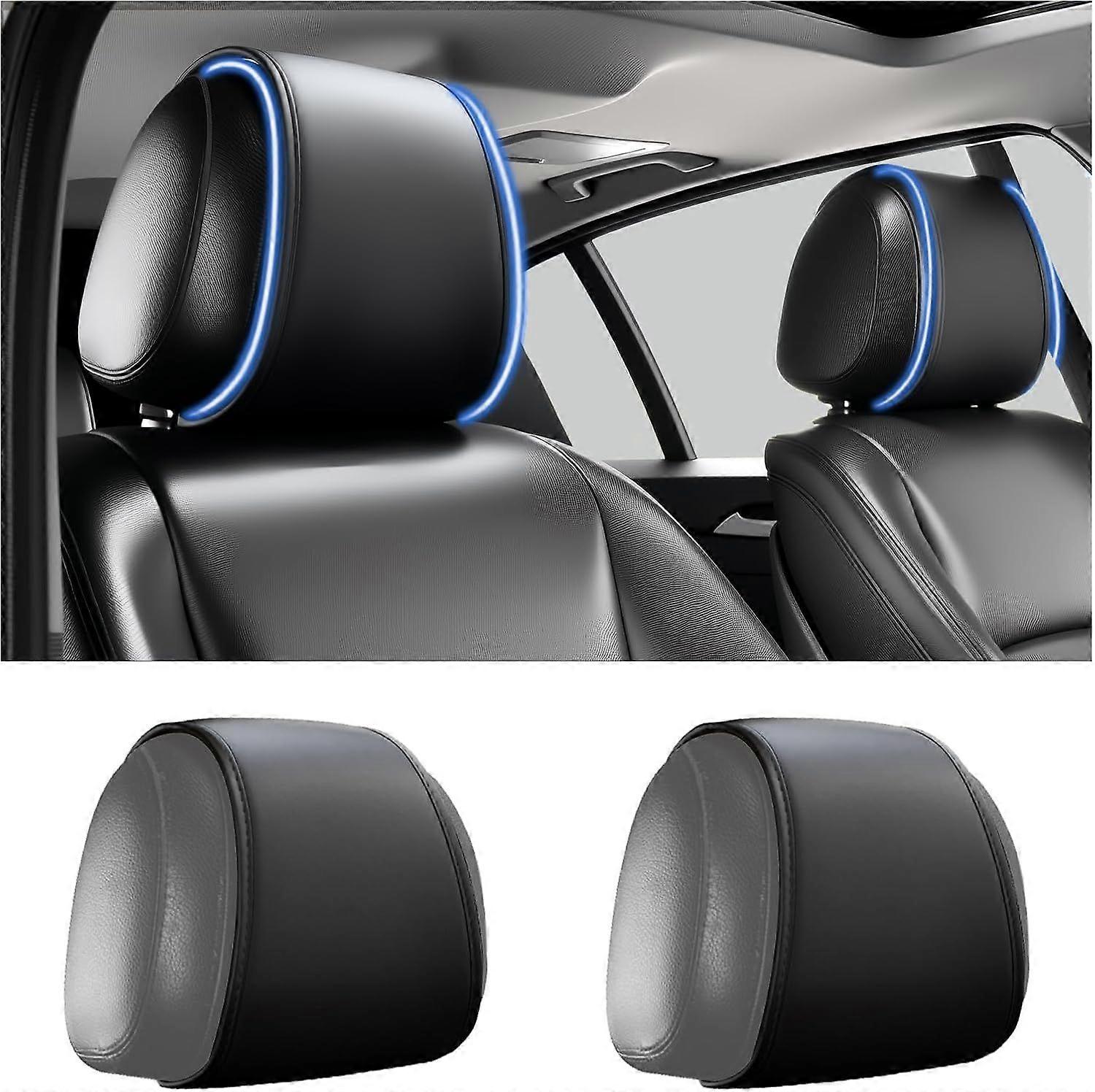2PCS Leather Car Headrest Covers with Pocket All Season Universal, Wallet/Key/Phone Holder, Back Seat Organizer & Decoration