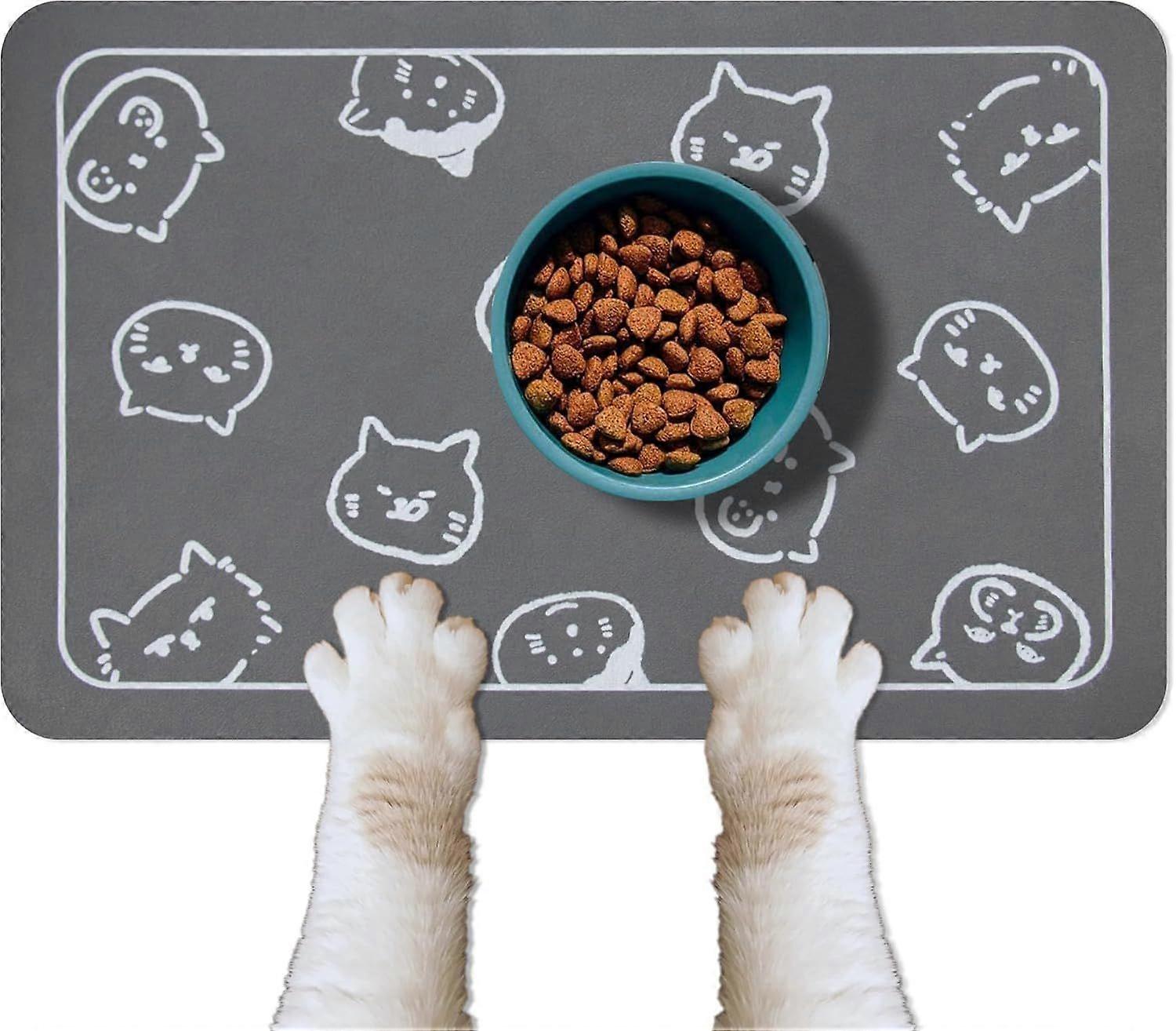 Cat & Dog Food Mat - Non-Slip Super Absorbent Pet Feeding Mat for Food & Water Bowls, with Multiple Cat Heads