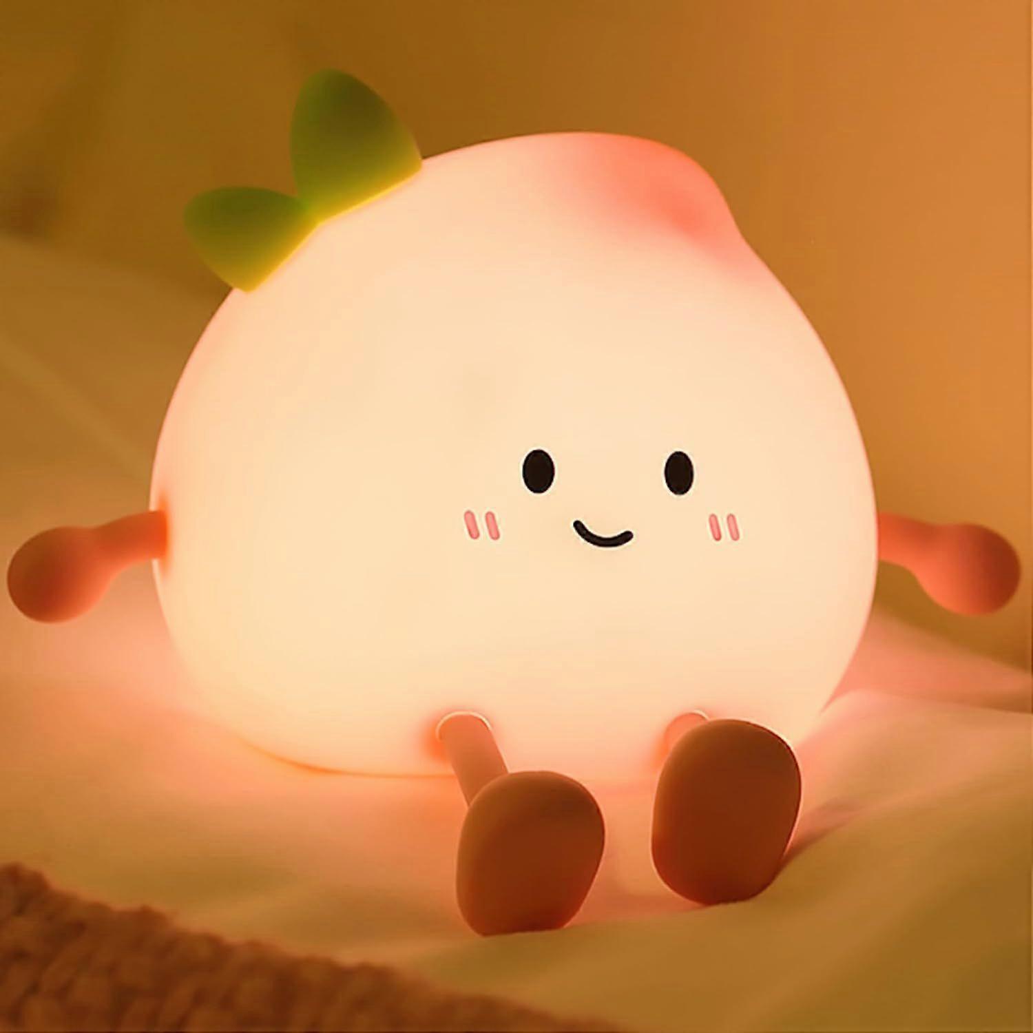 Cute Peach Silicone Night Light for Kids - 7 Color Changing & 3 Levels Warm Light, Rechargeable Touch Control Nursery Lamp, Soft Baby Bedside Lamp To