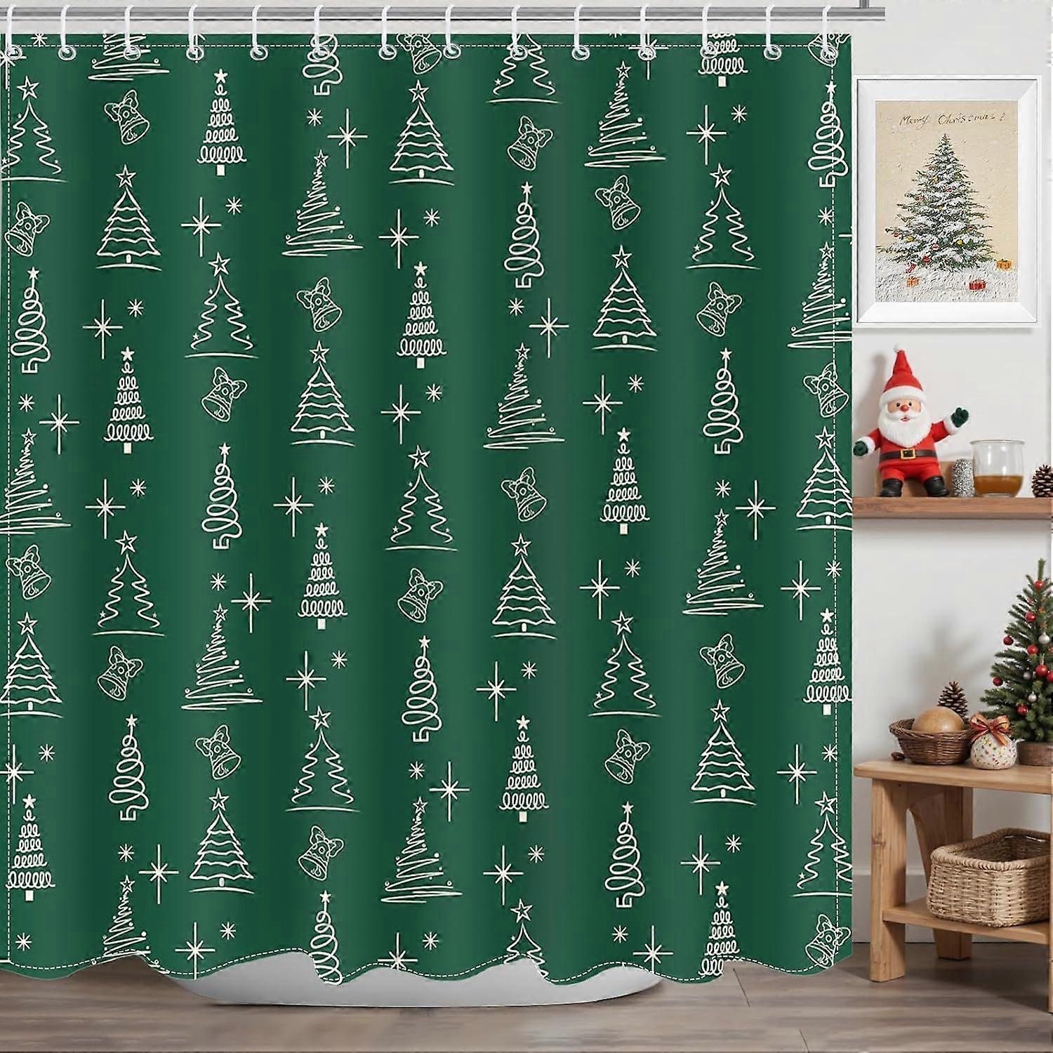 Cute Green & White Christmas Pine Tree Shower Curtain - Waterproof Fabric Holiday Bathroom Decor for Winter Vacation, 72x72 Inches