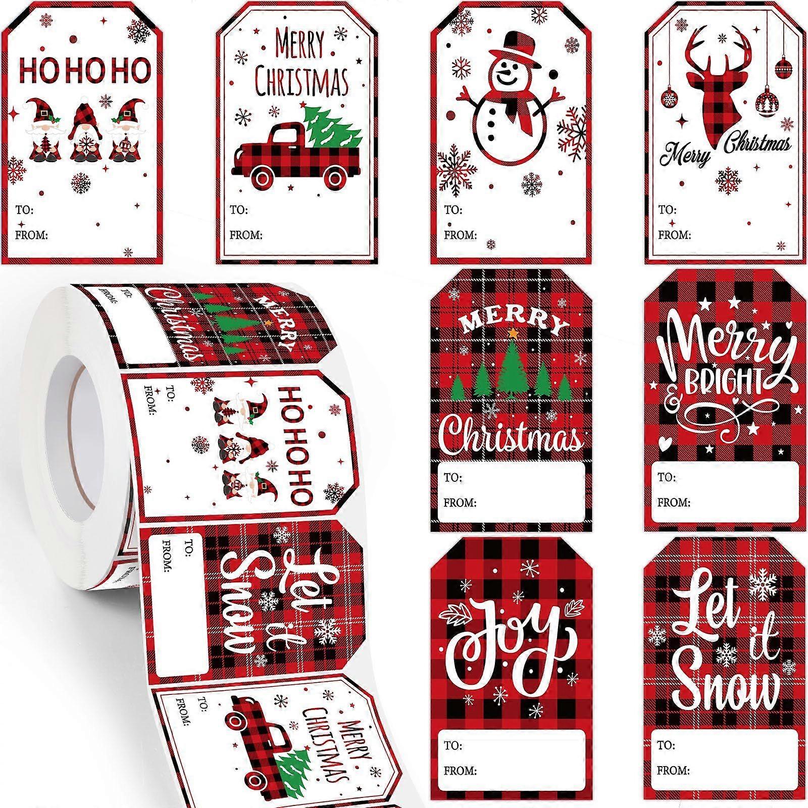 100 Pieces Self Adhesive Christmas Gift Tags with Various Festive Designs, Xmas Name Labels Paper Stickers for Gift Wrapping, Holiday Decorations and