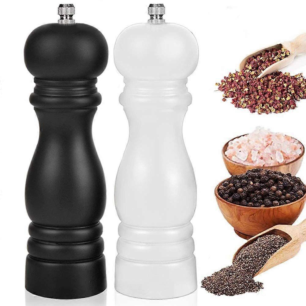 Adjustable Salt and Pepper Grinder Set, 2 Wood Mills with Ceramic Core for Spices and Seasonings, Refillable Manual Shakers with Coarseness Control, 8