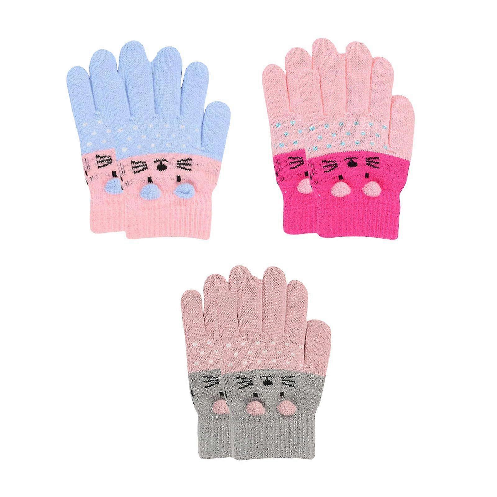 3 Pairs Toddler Winter Gloves for Girls 2-6 Years Old - Cute Cat Knitted Warm Gloves for Kids