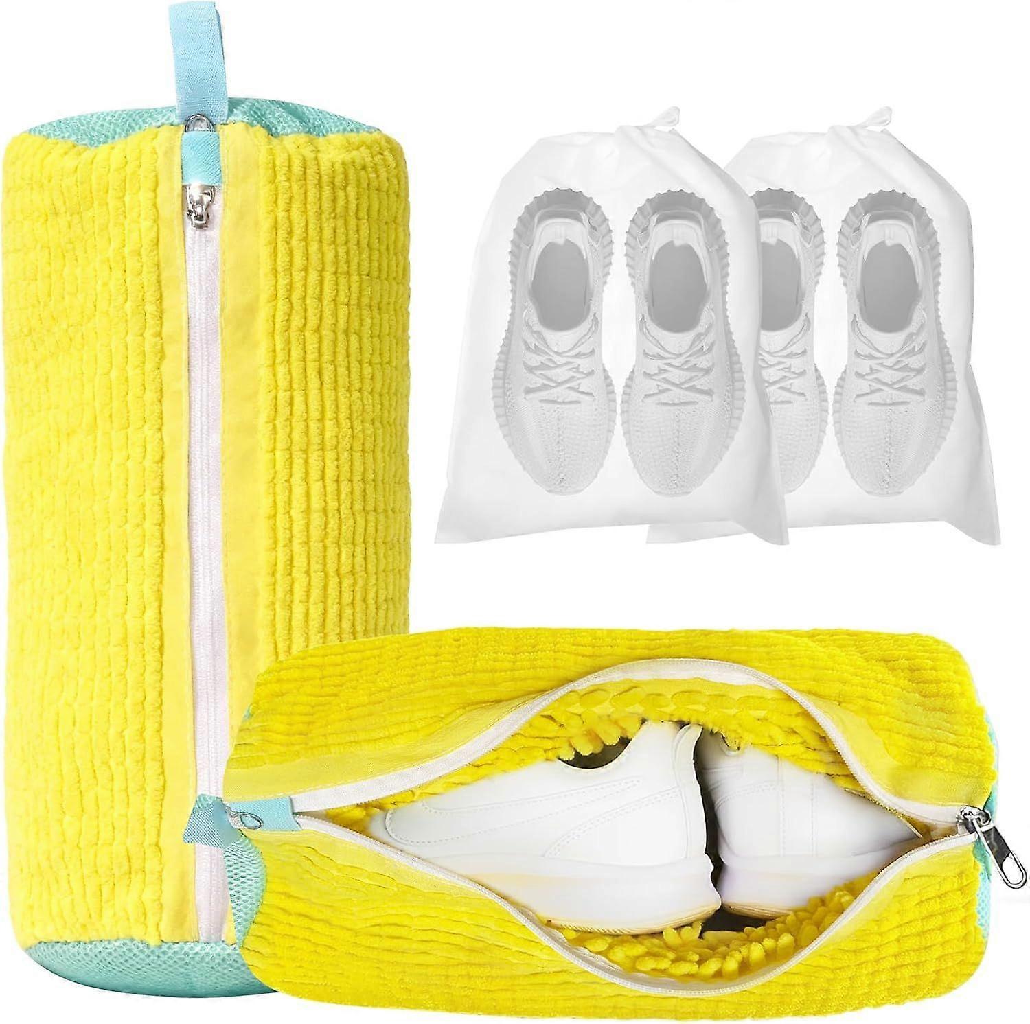 2 Pack Reusable Shoe Washing Bags - 360 Protection Shoe Laundry Bags for Sneakers/Running Shoes, Dustproof Shoe Storage Bags (Yellow)