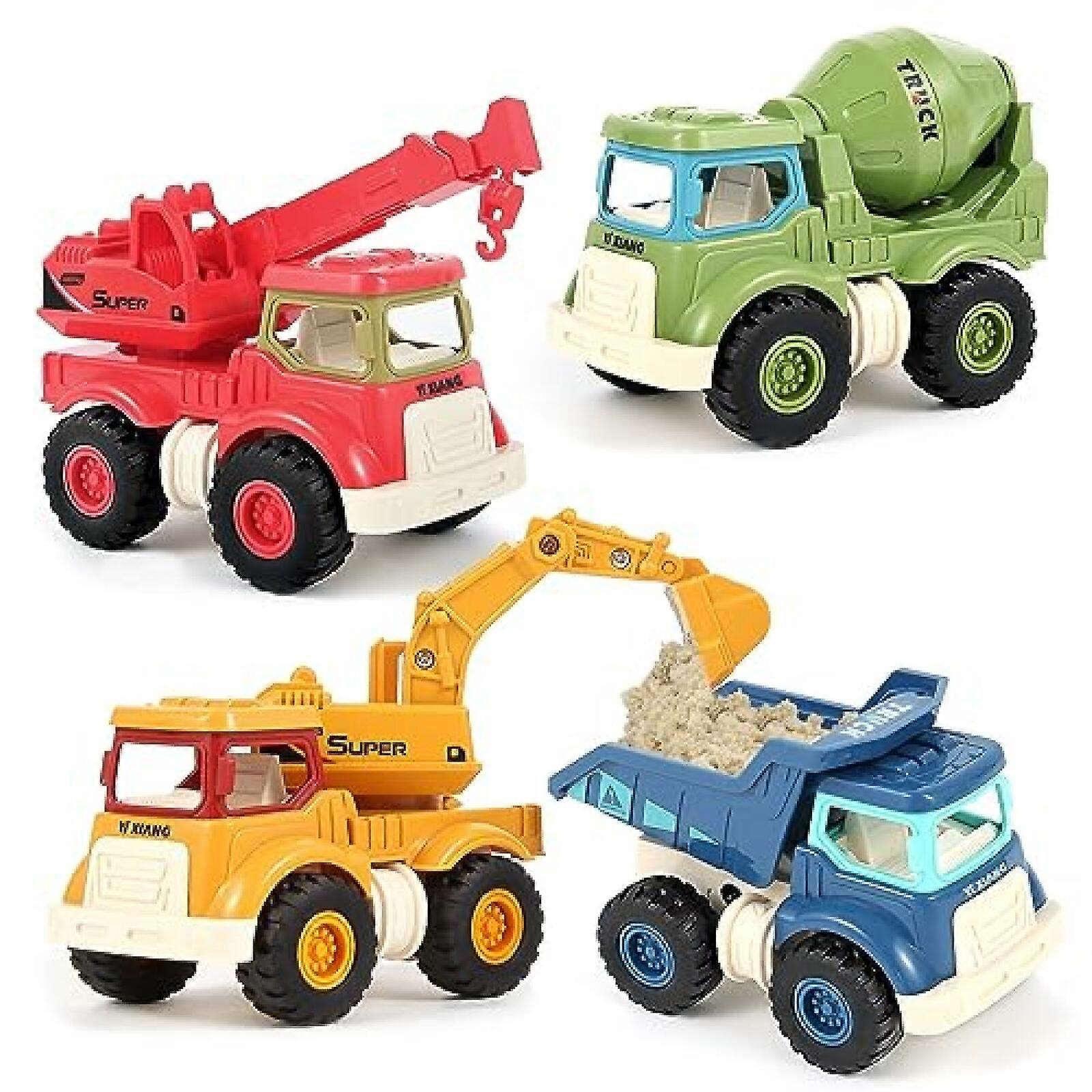Construction Toys For 2-5 Years Old Boys Girls Kids Toddlers, 4-in-1 Sandbox Excavator & Construction Truck Toys Set with Dump, Crane, Cement Mixer Tr