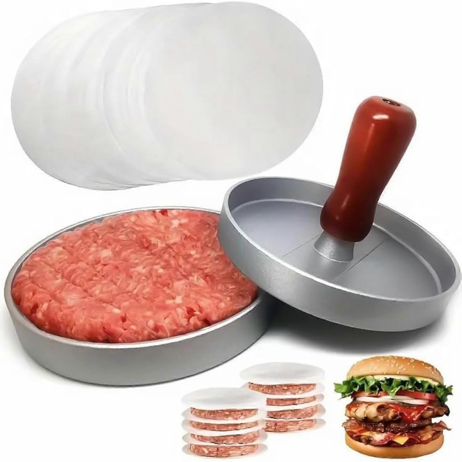 Burger Press with 100 Non-Stick Wax Patty Papers Hamburger Mold for Meat Beef Cheese, Veggie Burgers Ideal for Grill Griddle BBQ & Barbecue