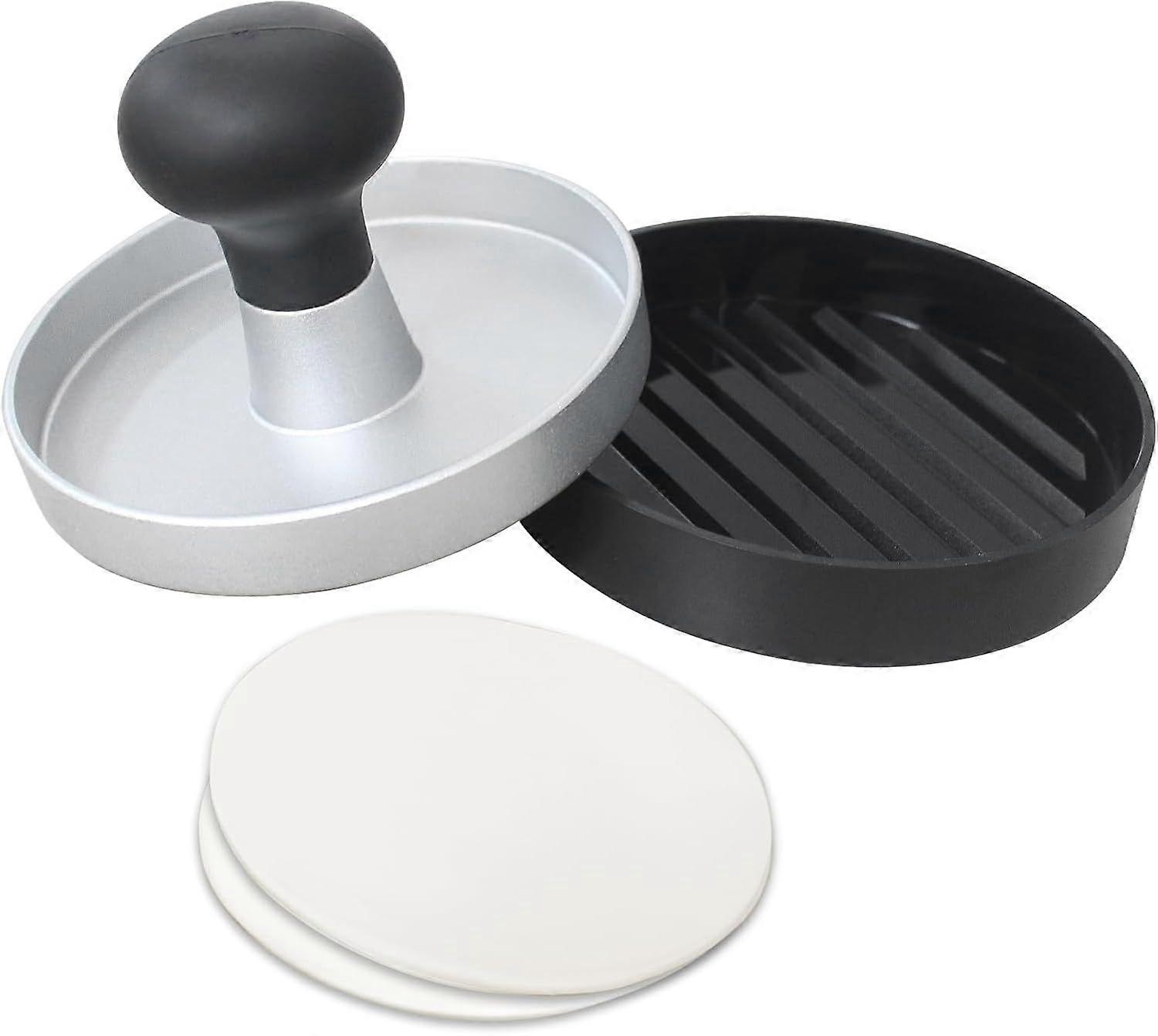 Stainless Steel Burger Press with Wood Handle & 50 Patty Papers Non-Stick Hamburger Patty Maker Mold, Ideal for Flattening Patties Searing Juicy Burg