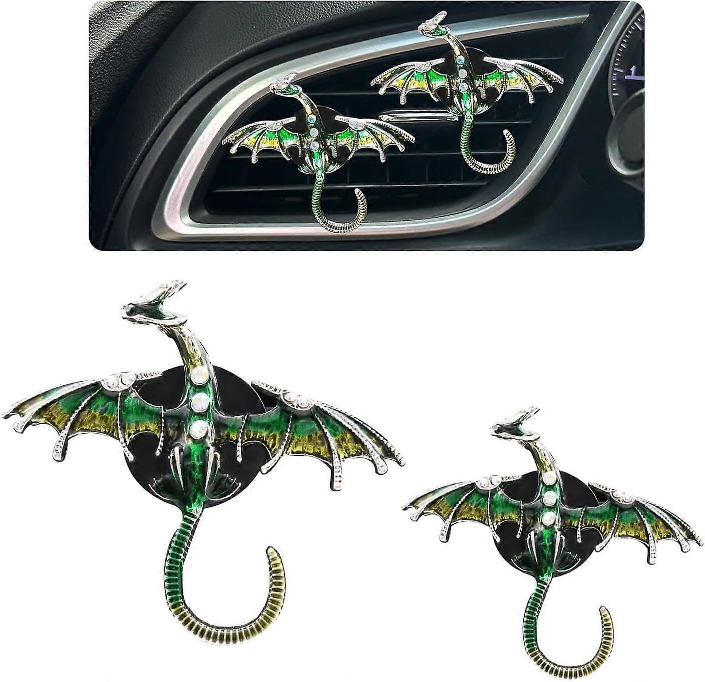 2pcs Bling Green Dragon Car Vent Clips Refillable Essential Oil Diffuser, Enamel Fire Dragon Wyvern Gothic Car Decor