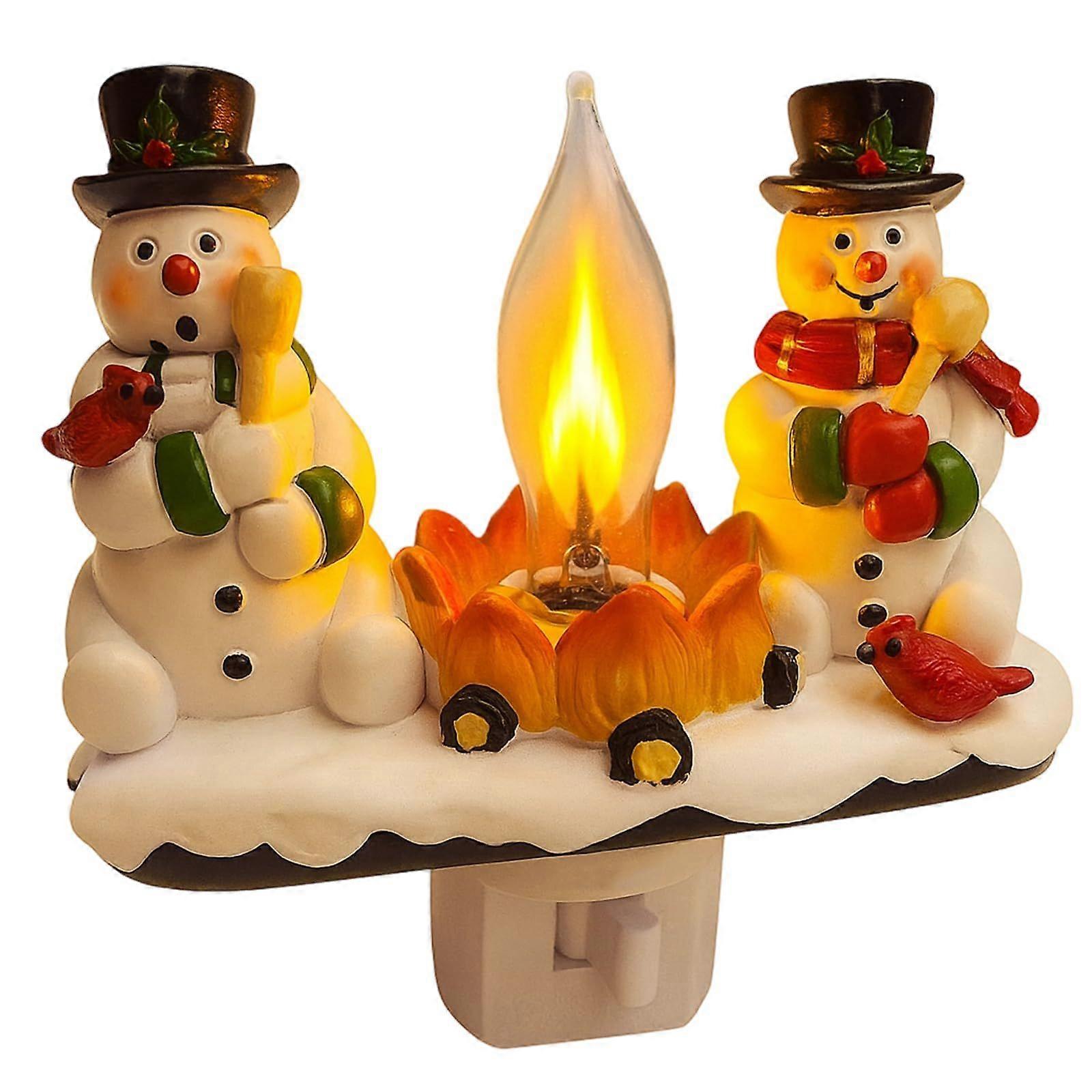 Plug-in Christmas Figurine Night Light with Flickering Campfire Effect, Cute Swivel Indoor Holiday Decor for Home, Warm White