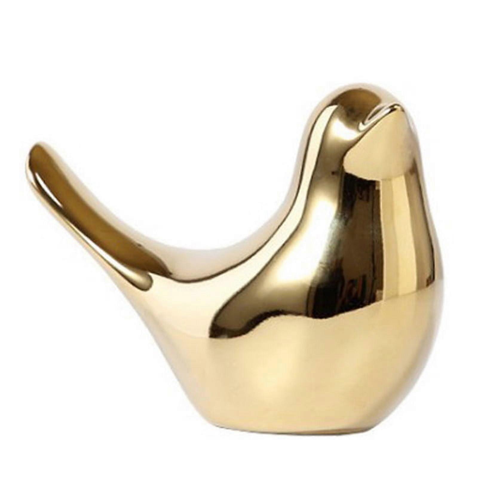 Golden Ceramic Bird Statues, Compatible with Home Decor, Soft Pads, Modern Gold Ornaments for Living Room, Bedroom, Office, Desktop, Cabinets