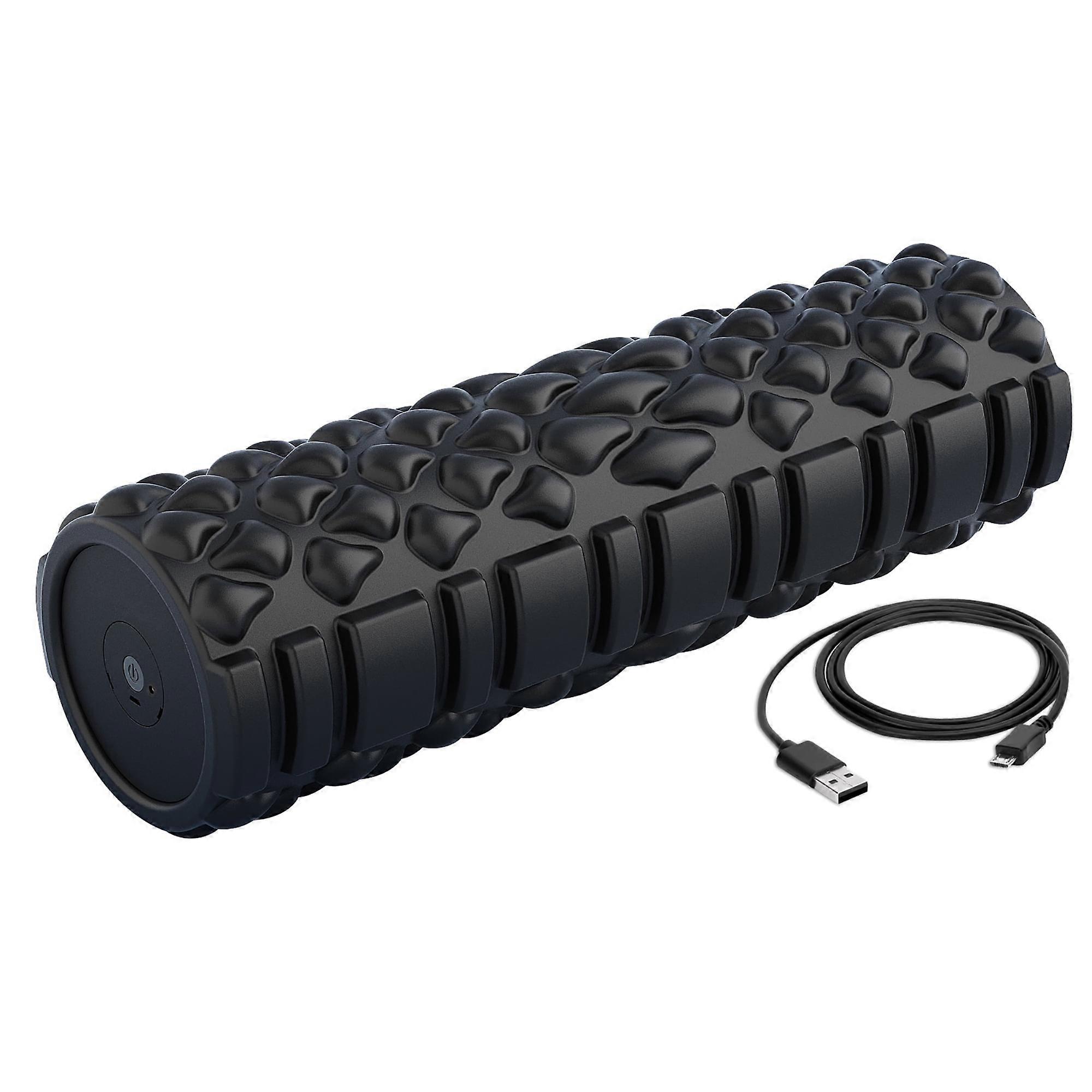 Quick vibrating fitness foam roller, rechargeable, full body recovery roller, black