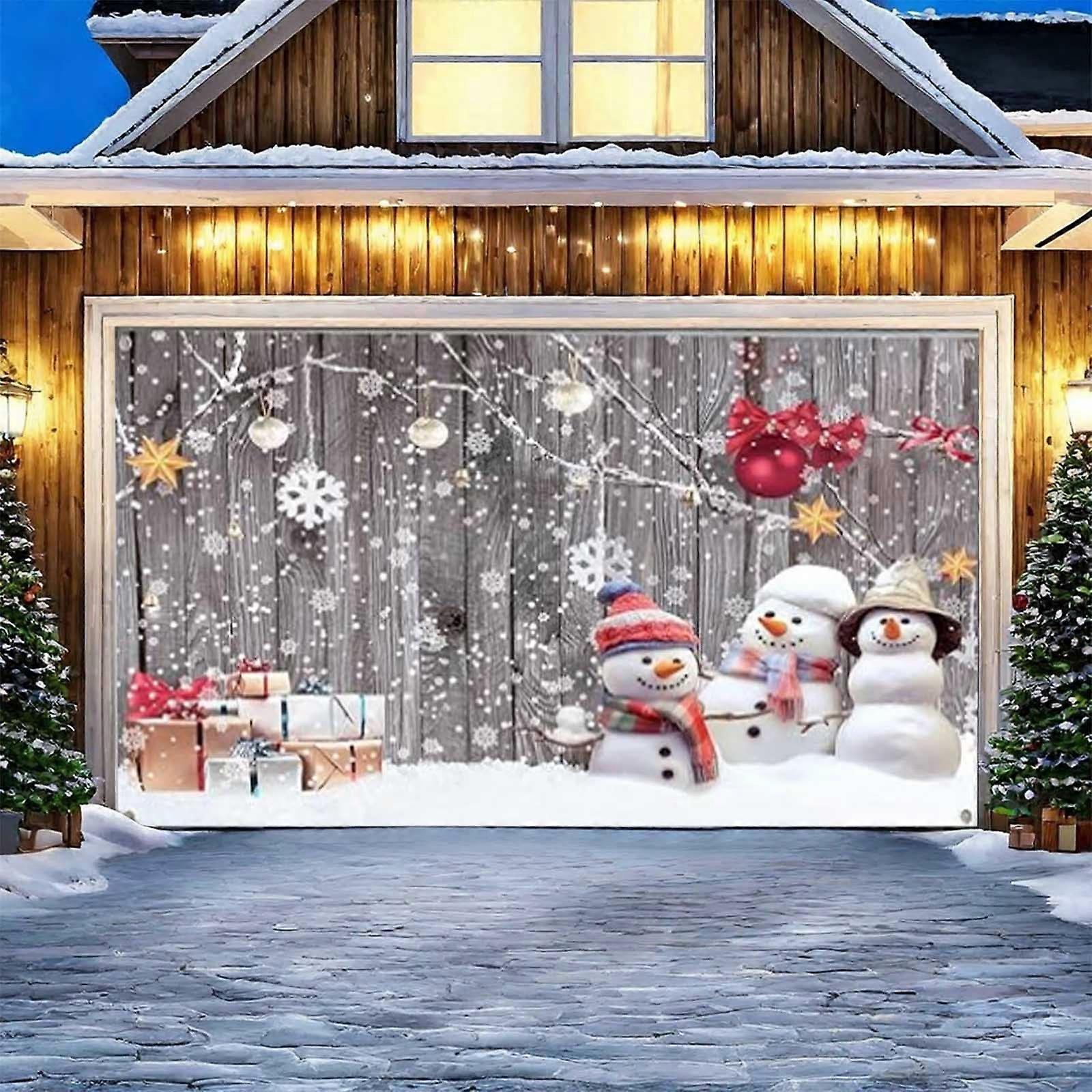 Large Merry Christmas Garage Door Cover - Compatible with Standard Sizes - Outdoor Holiday Banner Mural for Party Decoration