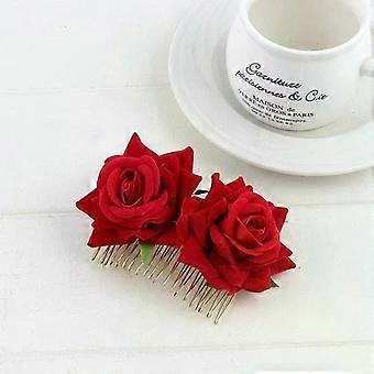 1PC Romantic Fancy Double Silk Artificial Rose Flower Hair Comb Purple Red Hair Clip Wedding Bridal Lady Prom Headpiece Headwear