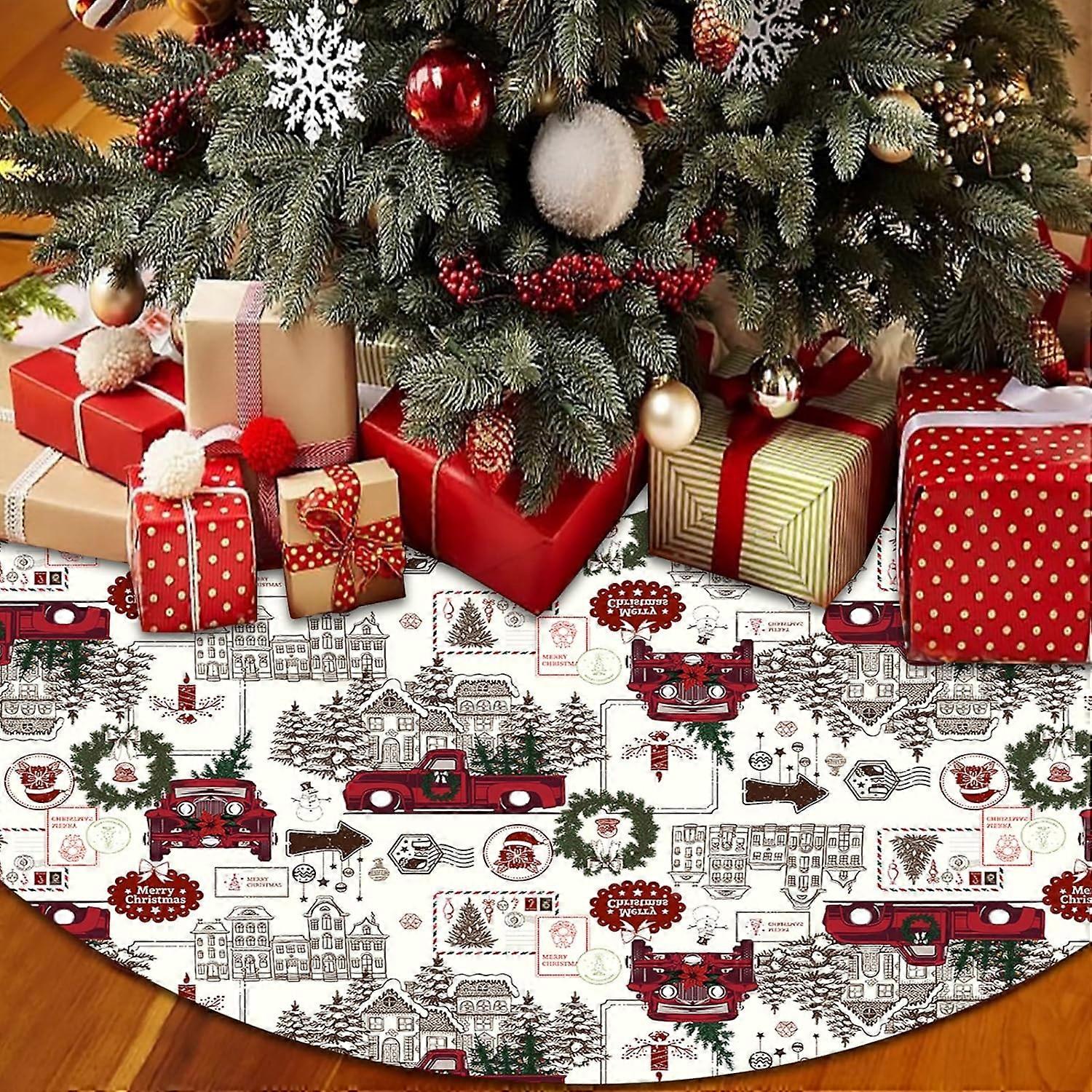 Christmas Tree Skirt White Tree Ornaments Christmas Tree Mat with Snowy Pattern for Decorations Holiday Party 48 inches