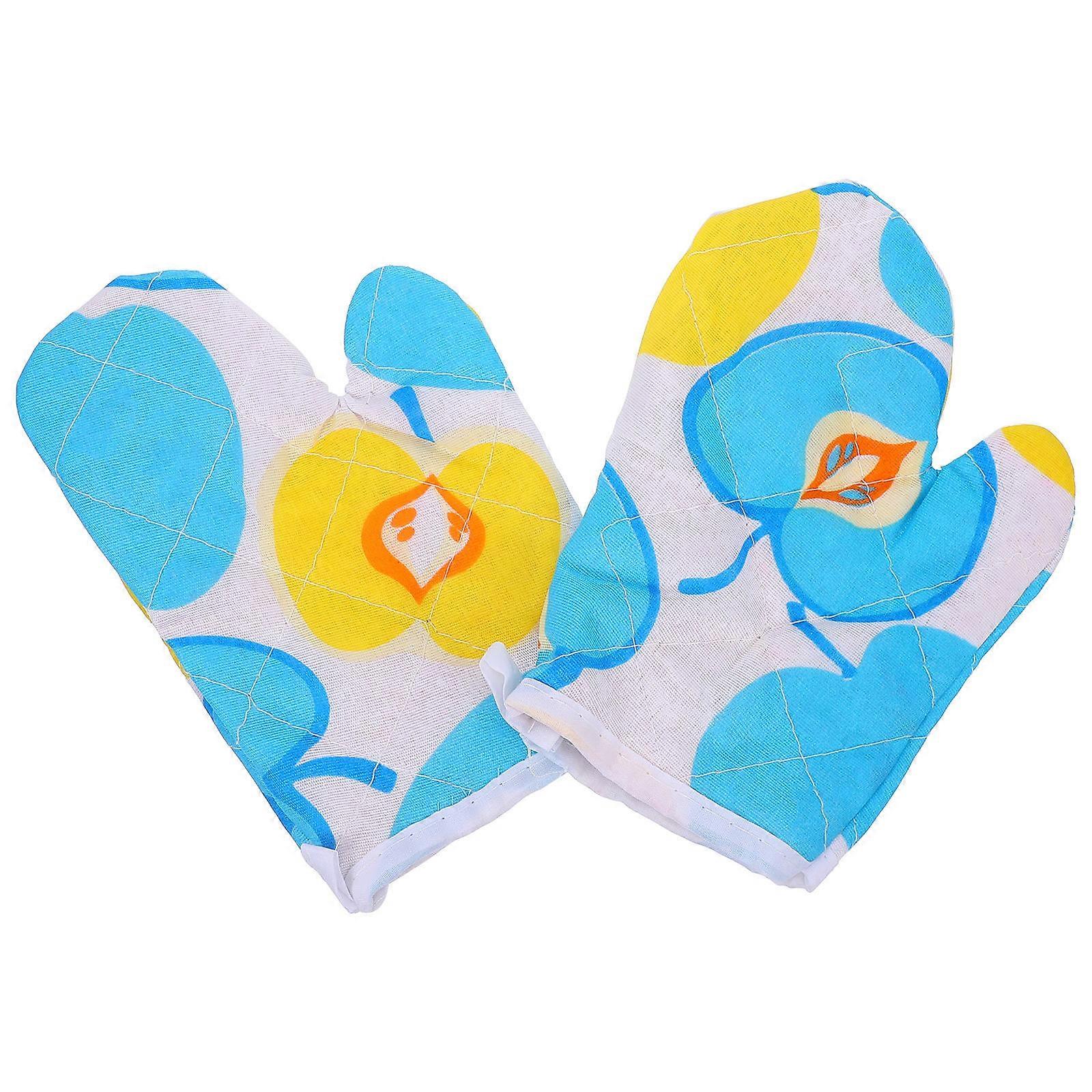 Cute Blue Kids Oven Mitts HeatResistant Polyester Cotton for Safe Baking and Cooking 2pcs Set