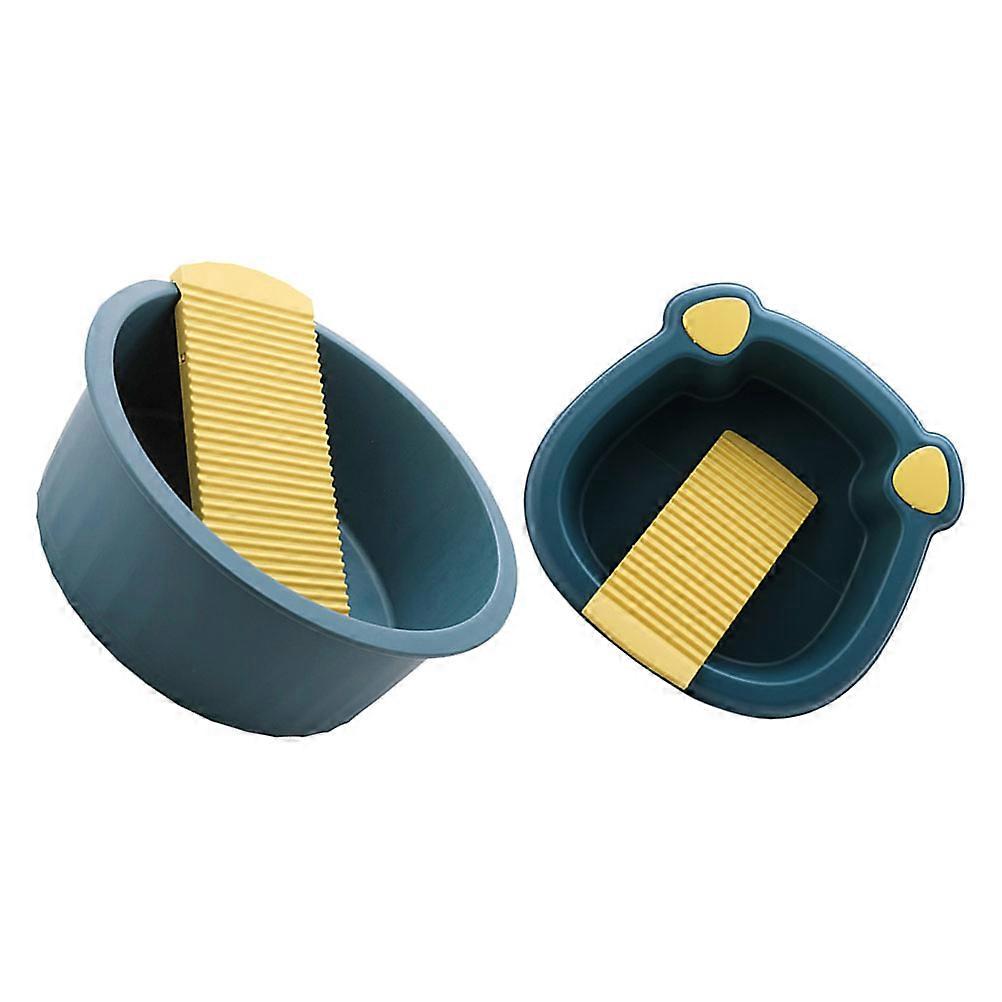 This thickened wash basin is good for cleaning baby bottles, student dormitory underwear, and more. The built-in washboard makes it easy to scrub clothes, ensuring they are thoroughly cleaned. Ideal for hand washing, this basin is a versatile addition to any household, providing a convenient solution for various cleaning tasks. Features -Color:Blue -Material:PP -Size:35.50X35.50X13.00cm/13.95X13.95X5.11in -Size:30.00X29.00X9.50cm/11.79X11.40X3.73in -Multifunctional design: this thickened wash basin is good for washing your face, doing laundry, and scrubbing clothes, making it a versatile addition to your home. -Builtin washboard: the integrated washboard eliminates the need for a separate purchase, allowing you to easily scrub and clean your clothes with minimal effort. -Foot soaking function: use this basin for foot baths to relax and soothe tired feet, enhancing your overall quality of life with a simple soak. -Dual basin design: featuring two separate sections for washing and scrubbing, this basin offers greater convenience and practicality for all your cleaning needs. -Spacesaving solution: compact and lightweight, this wash basin is ideal for student dormitories, small apartments, and other spaces, ensuring it fits seamlessly into your lifestyle Package list: 2pcs laundry basin