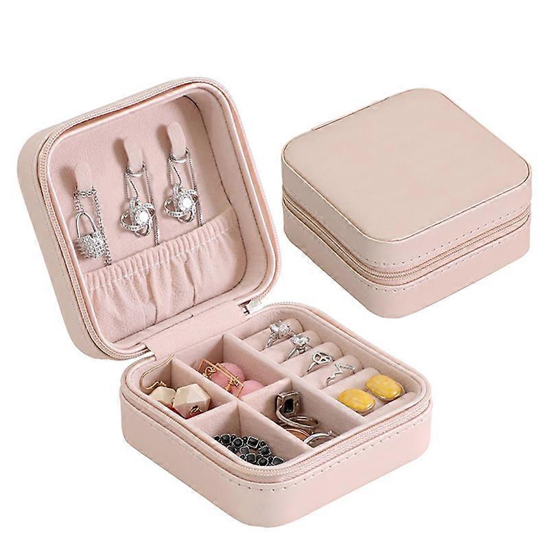 Jewelry Box, Compatible with Travel & Storage, Adjustable Portable Organizer for Necklace, Earrings, Rings, Light Pink
