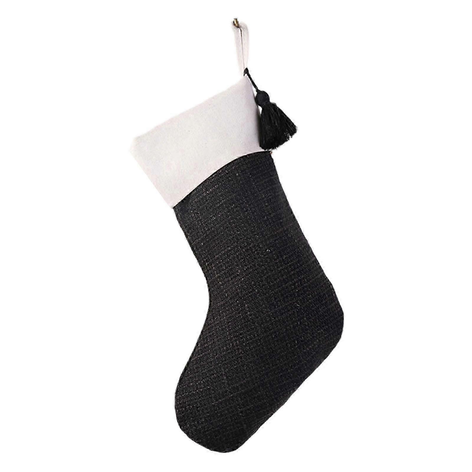 Decorative Tassels Accent Holiday Stocking Spacious Space Embroidered Burlap Linen Sock Christmas Decoration White