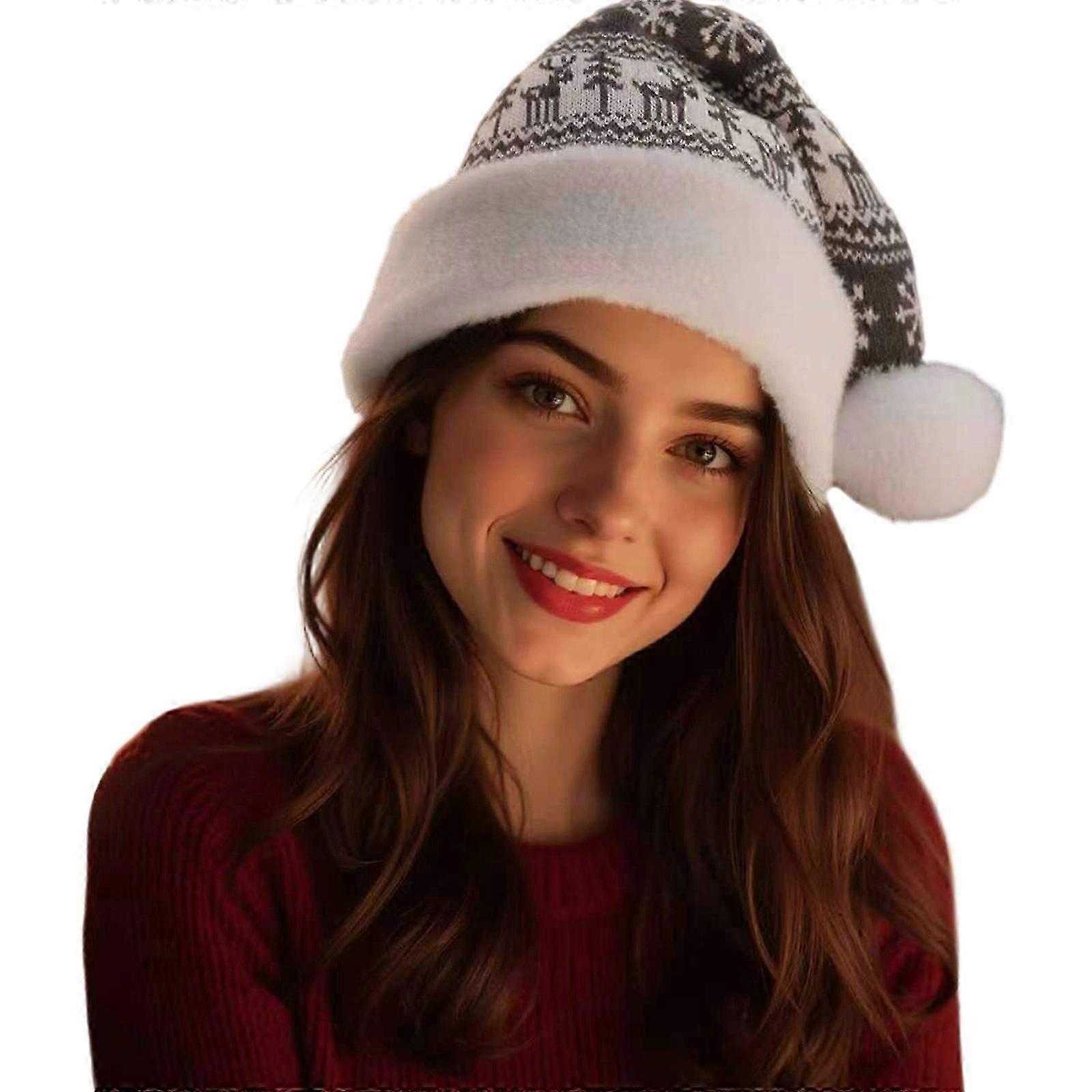 Adjustable Winter Hat Handmade Knitted Hat Sweet Adult Hat Women Ponytail Hat for Christmas Cheer and Winter Styles Red and white snowfl