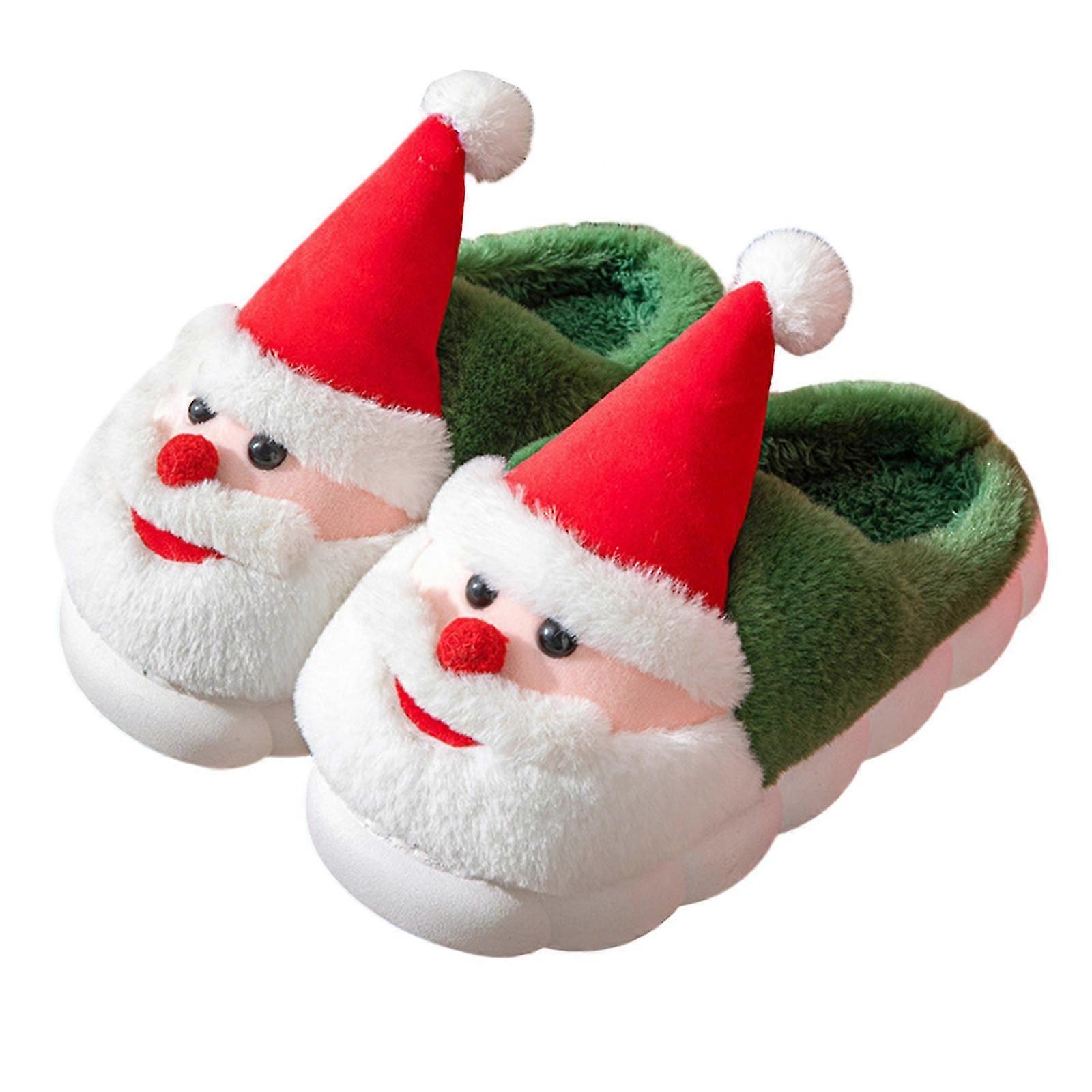 Santa Clause Slippers Plush Fleece Lining Warm Winter Slippers Anti Slip Christmas Themed Bedroom Shoe for Women Men Red D