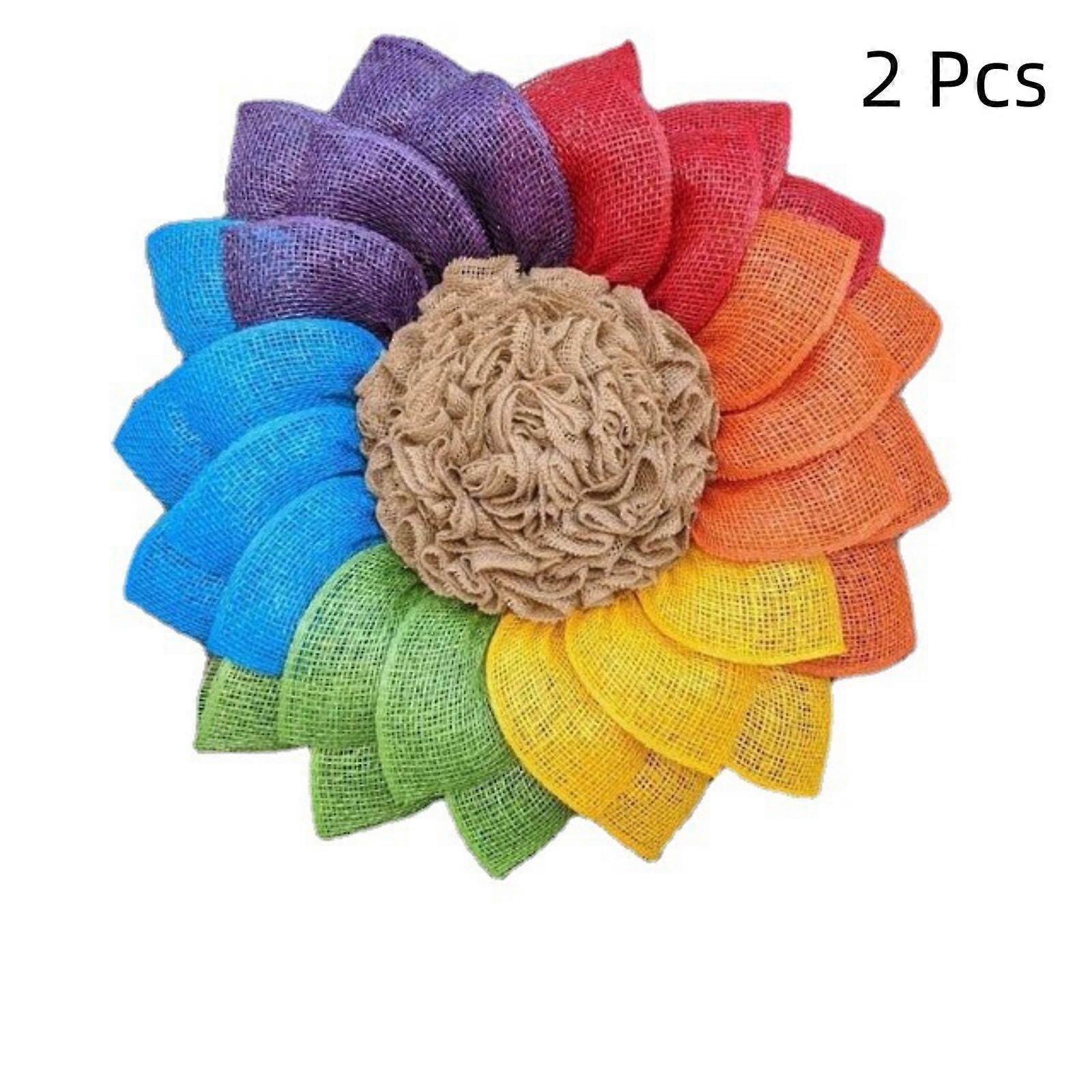 Rainbow Tone Flower Head - Artificial Fabric Flowers for Wedding, Indoor Outdoor Decor, Bright Color Handmade Durable Wreath
