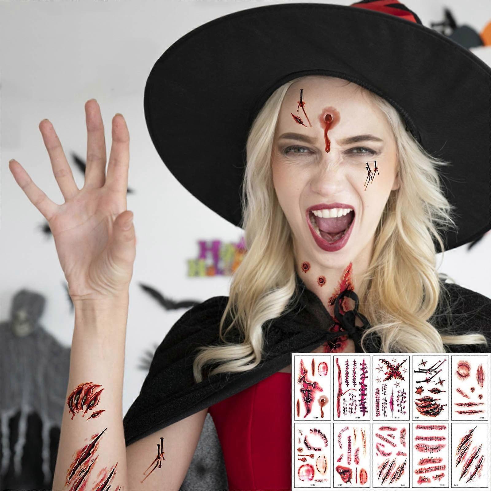 Halloween Savings! Avtoify Halloween Decorations, Halloween Fake Temporary Tattoos Stickers Long-standing Body Art Face Jewelry Festival Accessories